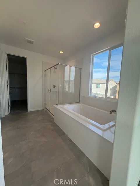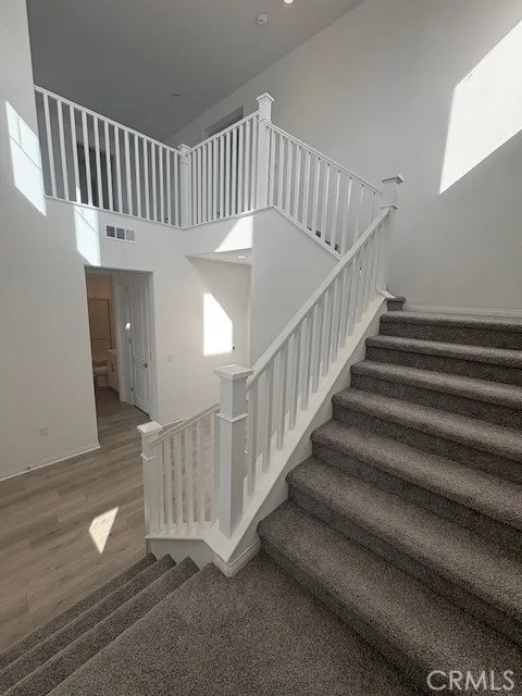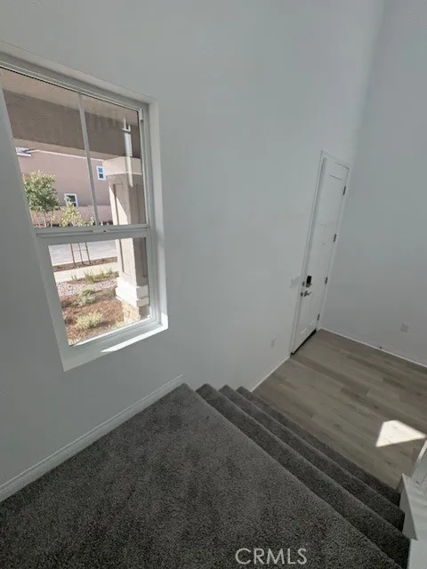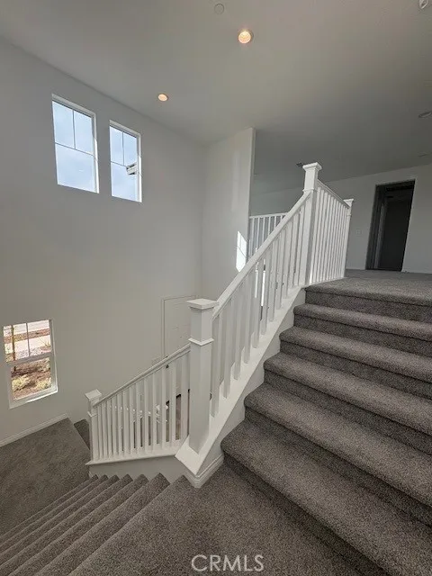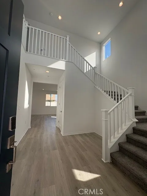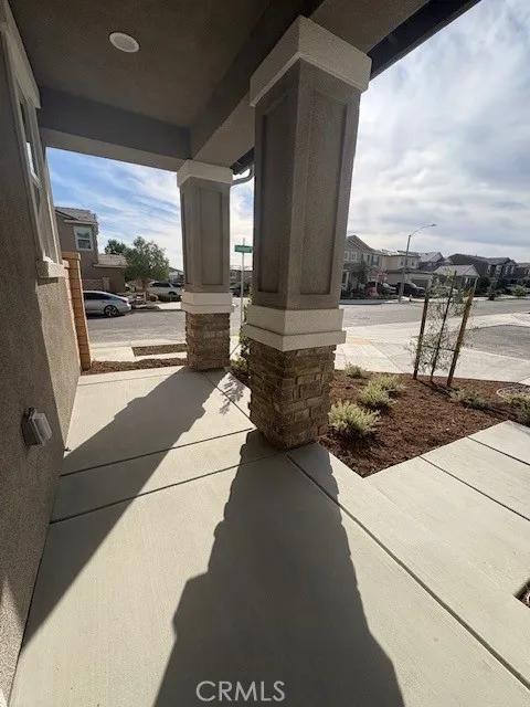Welcome to the Presley floorplan here in Legacy at the Braverde masterplan in Menifee. It's the final phase and only a few homes remain! As you enter, a 2 story ceiling entry welcomes you. The main floor offers an expansive great room, a beautiful sunroom that lets the light in, a gourmet kitchen w/ white cabinets, quartz counters w/full tile backsplash, under cabinet lighting, walk-in pantry and an immense center islandperfect for entertaining and a cook's dream come true! The whole house has tall 8-foot doors, tons of recessed lighting and ceiling fan prewires in great room, loft and all bedrooms. Flooring includes wood laminate on the main level, 12 x 24 tile flooring in bathrooms & laundry room and upgraded carpet in hallways, stairs and all bedrooms. A convenient first floor bedroom and full bathroom w/walk in shower and a spacious 2-car + storage garage completes the first level of the home. This home also features an open stair railing leading up to the second level where you'll find a large loft and three inviting bedrooms, each with their own walk in closets and a luxurious owner's suite complete with a separate shower and soaking tub. This home includes owned Solar and is turnkey! Visit today!
