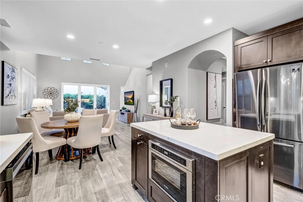 Fabulous opportunity to live in the village of Cypress Village in Irvine in this beautifully appointed, 2-story premium lot Trellis Court Plan 3 home. Built in 2018, this bright home boasts a spacious open floorplan with high ceilings in the living area and access to the side yard with no rear neighbors. The home features 2,000sq/sf of living space with 4 bedrooms and 3.5 bathrooms, including a downstairs bedroom and full bath, along with an upstairs loft. The gourmet kitchen opens up to the family room and includes premium dark wood cabinets, upgraded quartz countertops with a custom subway tile backsplash, kitchen island, and stainless steel appliances. Additional upgrades include wood flooring throughout downstairs, upgraded premium vinyl flooring upstairs, upgraded tile in upstairs laundry & baths, custom window coverings, designer paint, ceiling fans, and recessed lighting throughout entire home. Upstairs features a spacious master bedroom with a master bath along with 2 other bedrooms and 2nd full bath along with a loft. Garage features a Tesla 3rd generation charger with 60 amps & 240 volts for fast car charging. Enjoy resort style amenities including hiking & biking trails, sparkling swimming pool, clubhouse, and walking distance to all of the Great Park amenities, including Fivepoint Ice Rink. Close shopping at Woodbury Town Center & the Irvine Spectrum, parks, the Jeffrey Trail, and easy access to the freeways and employment centers. Zoned to award winning Irvine schools (Cypress Village Elementary, Jeffery Trail Middle School, and Irvine HS). Low Mello Roos of $1