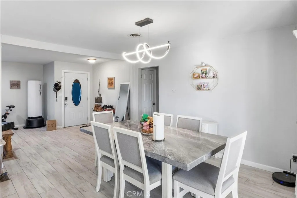 Welcome to this stunning 3-bedroom, 2-bath home offering a comfortable living space on an expansive lot. Step inside to discover elegant light gray wood-look tile flooring that extends through most of the home, creating a cohesive and modern feel. The spacious kitchen features recessed lighting, crisp white cabinetry, sleek white counter tops, and a large single-bowl sinkperfect for everyday living and entertaining. Enjoy meals under a stylish modern light fixture in the dining area, while both bathrooms showcase beautiful tile flooring and matching tile back splash in the showers, complemented by energy-efficient LED lighting. The primary bedroom offers a private en suite bathroom for added comfort, while the guest bedrooms feature cozy carpet flooring and ceiling fans. Additional highlights include recessed lighting throughout the home, a generous laundry room, and a large covered patio overlooking the spacious backyardideal for outdoor gatherings. The backyard also includes small sheds and an enclosure, offering extra storage and versatility.The property features a two-car driveway, an attached two-car garage, and a convenient roundabout for easy access. The front exterior is accented with attractive brick and stone detailing, adding timeless curb appeal. With plenty of space and potential both inside and out, this home is ready to welcome its new owners.