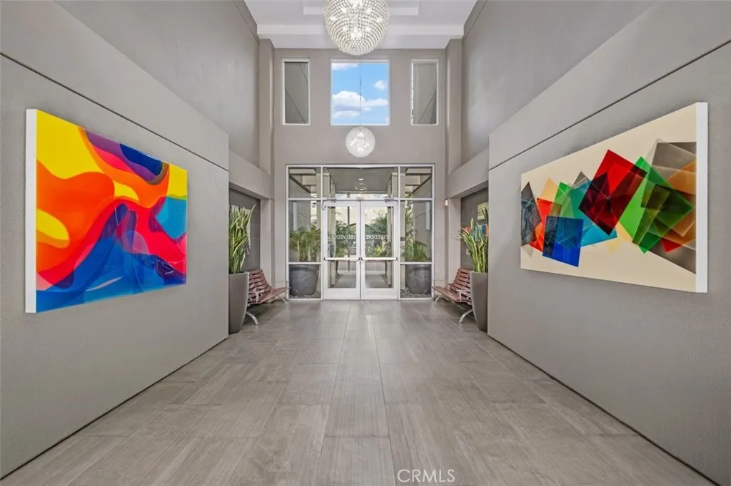 Welcome to sophisticated luxury at The Belvedere, Central Park West! Experience refined living in this stunning end-unit flat featuring 2 bedrooms, 2 bathrooms, and a private balcony. The open-concept layout showcases beautiful hardwood floors, 10-foot ceilings, and plantation shutters throughout. The gourmet kitchen is appointed with European cabinetry, slab granite countertops, and stainless steel GE appliances. Additional features include an interior laundry area with a washer, dryer, and storage. The primary suite offers a walk-in closet with built-ins and a spa-inspired bath with dual sinks and upgraded tile finishes. Located on the second floor, this home offers quiet and serene courtyard views. Two dedicated underground side-by-side parking spaces with storage complete this exceptional home. Enjoy convenient access to The Belvederes 8,000 sq. ft. clubhouse featuring a fitness center, studio, outdoor patio with fireplace and wet bar, Junior Olympic-size saline pool, two spas, BBQ pavilion, sport court, and pickleball. This sought-after prime central location is near the I-405, John Wayne Airport, world-class shopping, dining, and Southern Californias finest beaches.