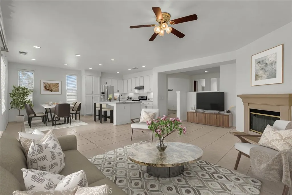 Welcome to this bright and inviting single-story home featuring an open floor plan filled with natural light. Situated on a desirable corner lot, this residence offers comfort, style, and functionality throughout. The updated kitchen is a true centerpiece, showcasing a large center island with bar seating, sleek quartz countertops, and modern finishes. The kitchen opens seamlessly to the spacious living room, where an oversized layout and cozy fireplace create the perfect gathering space for family and friends. An open office area provides flexibility for work or study, while two well-appointed guest bedrooms share a full guest bathroom. The private primary suite is thoughtfully located on its own side of the home, offering a peaceful retreat with ample space and comfort. Additional features include a convenient laundry room with built-in storage, washer and dryer included, and a two-car garage. With no HOA and placement in the highly rated Temecula Unified School District, this home combines ease of living with exceptional value. Dont miss this opportunity to own a beautifully maintained home that truly has it all!