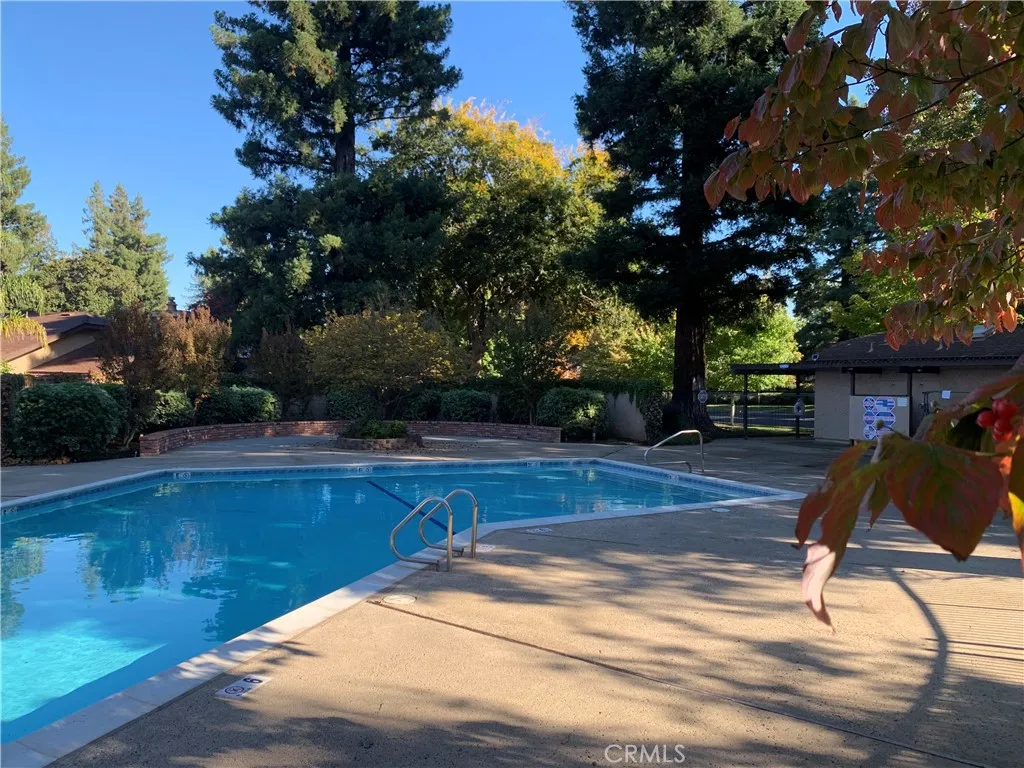 Wonderful, quiet Chico location in the lovely Woodcrest complex, where youre surrounded by mature, lush landscaping and beautiful redwoods. This charming condo offers 3 spacious bedrooms and 2.5 bathrooms, along with a welcoming layout that feels warm and inviting from the moment you step inside. The living room features high ceilings and a gorgeous brick fireplace that truly anchors the space. The kitchen is adorable and perfect for entertaining, offering a cozy dining nook plus an additional room that connects to the kitchenideal as a formal dining room, office, or comfortable sitting area. Upstairs are two generous guest bedrooms and a guest bathroom with new flooring. The large primary suite features a dual-sink vanity, lots closet space, and new flooring as well. One of the best highlights is the incredible, oversized fully gated and covered patioyour own private retreat. Relax in the hot tub or unwind while enjoying the peaceful, beautifully landscaped surroundings. Additional features include a two-car attached garage and access to the community pool, perfect for cooling off during Chicos hot summers. Close to shopping and everyday conveniences, this condo is ready to become a beautiful place to call home!