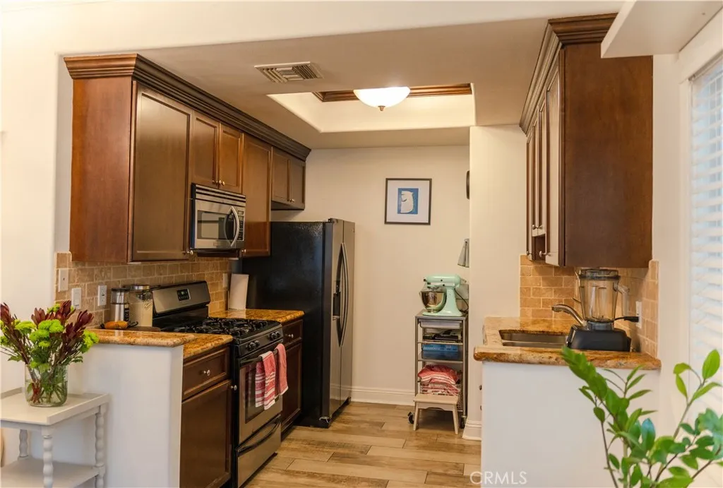 Located in a highly walkable pocket of Studio City, this 950 sq ft first-floor corner unit offers exceptional convenience near parks, shops, and daily amenities. Just off Ventura Blvd, the home provides easy access to restaurants, cafs, boutique stores, and essential services. Beeman Park and the Studio City Recreation Center, along with the Studio City Public Library, are a short distance away. The Studio City Farmers Market is only minutes away. The home is situated within the well-regarded Carpenter Community Charter School area. Interior features include an open and practical layout, windows replaced last year, a spacious primary bedroom with generous closet space, a versatile second bedroom, two well-maintained bathrooms, and a functional kitchen with ample storage. The building offers controlled access, gated parking, and convenient access to the 101 and 170 freeways. A desirable opportunity in a sought-after Studio City location.