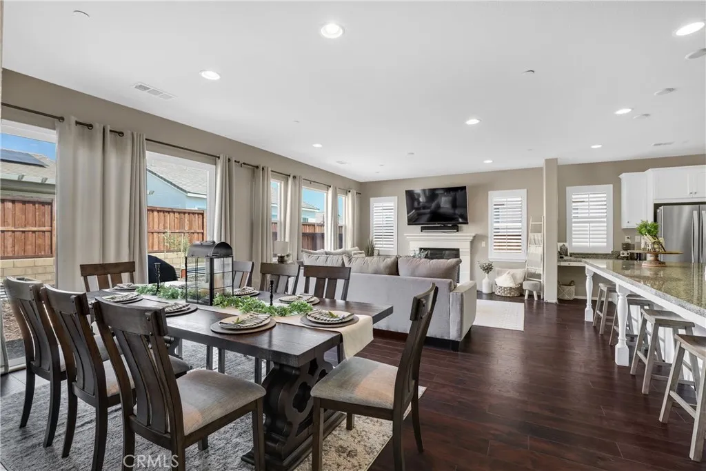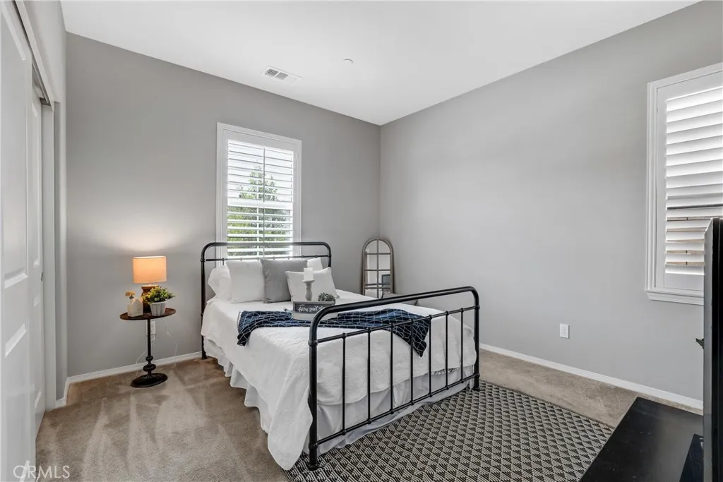 Highly sought-after single level home, ideally located in the prestigious and highly desirable Heritage Lake community, offering the best in resort-like living. The manicured drought resistant landscaping and Spanish influenced stacked stone entry creates a stunning first impression. Step inside and soak in the light filled interior with gorgeous wood laminate floors, a neutral palette, plantation shutters, and recessed lighting throughout the well-designed open concept floor plan, all providing an ideal living environment. The living area is a welcoming gathering space around the fireplace, perfect for relaxing with loved ones. The ample dining space has sliders opening to the back yard patio, a superb indoor-outdoor living area for entertaining. The expansive kitchen is a dream with Granite countertops, timeless White Shaker cabinetry, stainless-steel appliances, prized coffee bar/workspace, and abundance of countertop and storage space, and a huge center island with breakfast bar. The Primary Suite is a peaceful retreat with a roomy primary with gorgeous tile flooring, Quartz topped dual vanity, soaking tub, and oversized step in shower. Two spacious guest bedrooms and a sparkling guest bath complete this superb floor plan. The backyard is a tranquil oasis with easy care landscaping. Additional fine features include a tankless water heater and a convenient indoor laundry room. Just a short walk to Heritage Lake, Heritage Lake Park and local schools. Residents enjoy resort-style amenities including a 7,000 sq. ft. clubhouse, access to a private 25-acre lake for catch-and-