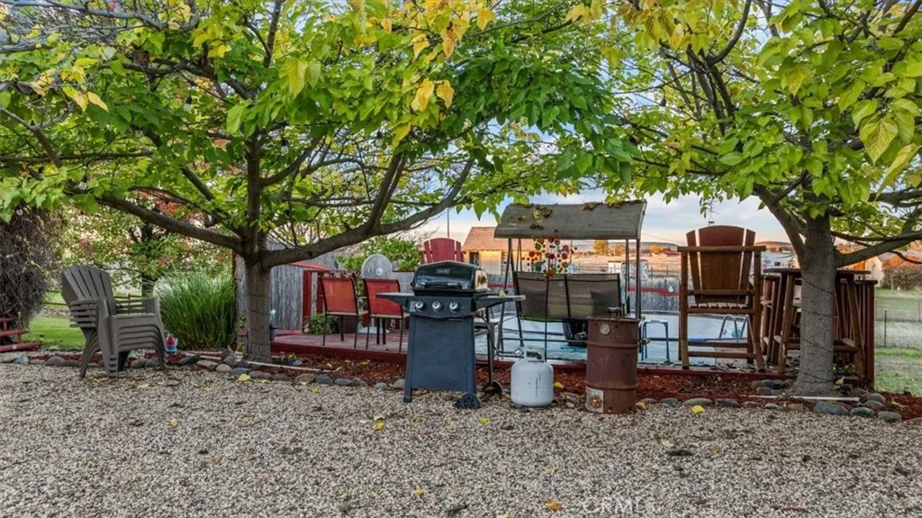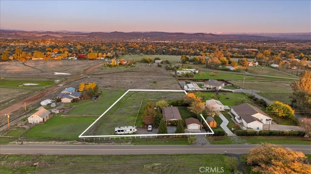 Spacious 4-bedroom, 2-bath home on 2.25 acres. Landscaped, fully fenced and cross-fenced for livestock. With mature trees, shady lawns, and plenty of room to roam, it offers both comfort and country living. Inside, the open-concept layout includes a kitchen with a butcher block island and large pantry, flowing into a living room and family room; great for entertaining. The primary suite is thoughtfully separated from the additional bedrooms, creating a private retreat. A pellet stove adds cozy warmth in cooler months and the roof was just replaced with sun reflecting tabs for extra efficiency. Step outside to your personal retreat: an above-ground pool with decking and stunning views of Table Mountain and the Oroville Dam, a fire pit area, and automatic sprinklers keeping the oversized lawn area green year-round. Additional highlights include; a detached garage, RV & boat parking, connected to city sewer & water, room for animals, hobbies, and entertaining. This property combines country charm with modern convenience and outdoor spaces youll love while being centrally located for commuting.