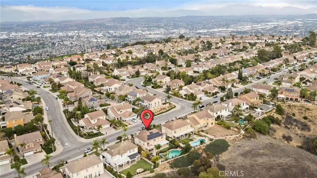 Perched in the desirable Vantage Pointe community of Rowland Heights, this expansive view home offers 6 bedrooms, 5 bathrooms and approx. 3,551 sq.ft. of living space on an oversized ~16,500+ sq.ft. lot. Thoughtfully updated over the years, the interior features double-door entry, high ceilings, crown molding, recessed lighting, plantation shutters and beautiful wood flooring that flows through the main living areas. The flexible floor plan includes two bedrooms and two bathrooms on the main level, including a generous ensuite that can function as a guest or multi-generational suite. The remodeled kitchen opens to the family room and showcases quartz countertops, resurfaced cabinetry, stainless steel appliances and a built-in KitchenAid refrigerator. Upstairs youll find four additional bedrooms and three bathrooms, highlighted by a spacious primary suite with double-door entry, upgraded spa-style bath, and a private balcony capturing sweeping city-lights views. The resort-style backyard is ideal for entertaining, offering a sparkling pool and spa, built-in BBQ, covered patio and lush palms. On clear evenings, you can relax in the yard or on the primary balcony and watch the Disneyland fireworks light up the Orange County skyline. Energy-conscious features such as solar panels and an electric-car charger add everyday convenience, while the location puts you close to parks, markets, shopping, the Rowland Heights Community Center, and easy access to the 60 and 57 freeways. Solar panel is leased.