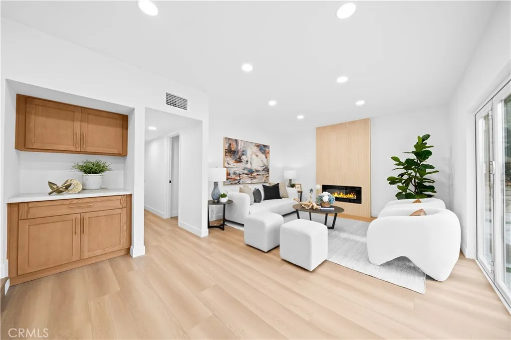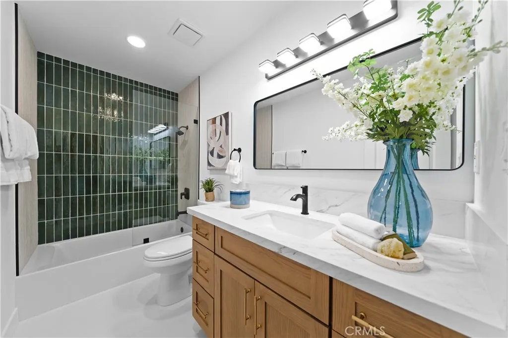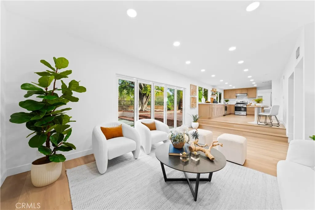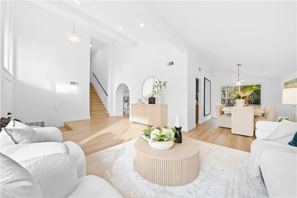 In the heart of Mission Viejos sought-after Madrid Del Lago community, this exquisitely renovated home invites you to experience refined Southern California living. Designed with meticulous attention to detail, the property features high cathedral ceilings that welcome natural light, creating a warmth and inviting atmosphere. The formal living room is spacious and enhanced by a garden window showcasing the picturesque front yard. The thoughtfully designed floor plan includes a chefs kitchen equipped with brand new top-of-the-line appliances, quartz countertops, elegant cabinetry, and stylish fixtures. The sunk-in family room provides a perfect space for entertaining, featuring an elegant fireplace and a bi-folding door that opens up an entire wall for seamless indoor-outdoor living. The outdoor area offers a stunning view and ample space for social gatherings or relaxation. This home boasts 4 spacious bedrooms and 3 full bathrooms, including a convenient main-level guest suite. The master retreat is a true haven, featuring high ceilings, a large walk-in closet, and a luxurious master bath with dual vanity sinks, new cabinetry, updated hardware, and a walk-in shower. Upstairs, the two oversized bedrooms share a fully remodeled bathroom with premium upgrades. Additional enhancements include new plumbing throughout, new windows, updated flooring, and a brand new HVAC system. This property is a perfect blend of comfort, elegance, and modern design, ideal for anyone seeking a refined lifestyle in one of Mission Viejos finest communities.