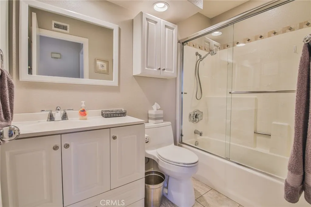 Welcome to this well-maintained upper-level corner-unit condo in the desirable Glenwood Village community of Aliso Viejo. This thoughtfully designed, diligently maintained, and beautifully updated home features 1 bedroom plus a den/officeperfect for working from home and easily convertible into a second bedroom. Recent updates include beautiful Luxury Vinyl Plank (LVP) flooring, a new AC and furnace (2020), Granite Transformations countertops in the kitchen, an updated bathroom, and new R-38 rated attic insulation with a radiant barrier and attic fan to help reduce heating and cooling costs. The unit includes its own private balcony/sitting area with private staircase access. The versatile den/office includes its own sliding door entrance. The dining area and spacious family room feature vaulted ceilings with high accent windows that bring in exceptional natural light, along with a cozy gas fireplace. The combination of soaring ceilings, tall windows, and plantation shutters creates a bright, inviting living space throughout the day. Clean LVP flooring and recessed lighting add a modern touch. The updated kitchen includes stainless steel appliances, Granite Transformations countertops, ample cabinet space, and an efficient layout. Refrigerator is included. Down the hall to the primary bedroom is a separate in-unit laundry area (washer and dryer included) and a full bathroom. The primary bedroom features vaulted ceilings, additional high windows that provide abundant natural light, and a walk-in closet. Surrounded by lush trees, green common areas, parks, and natural open sp
