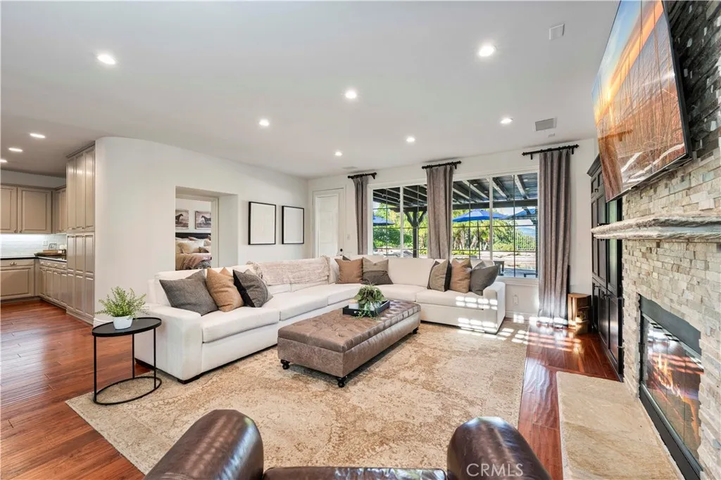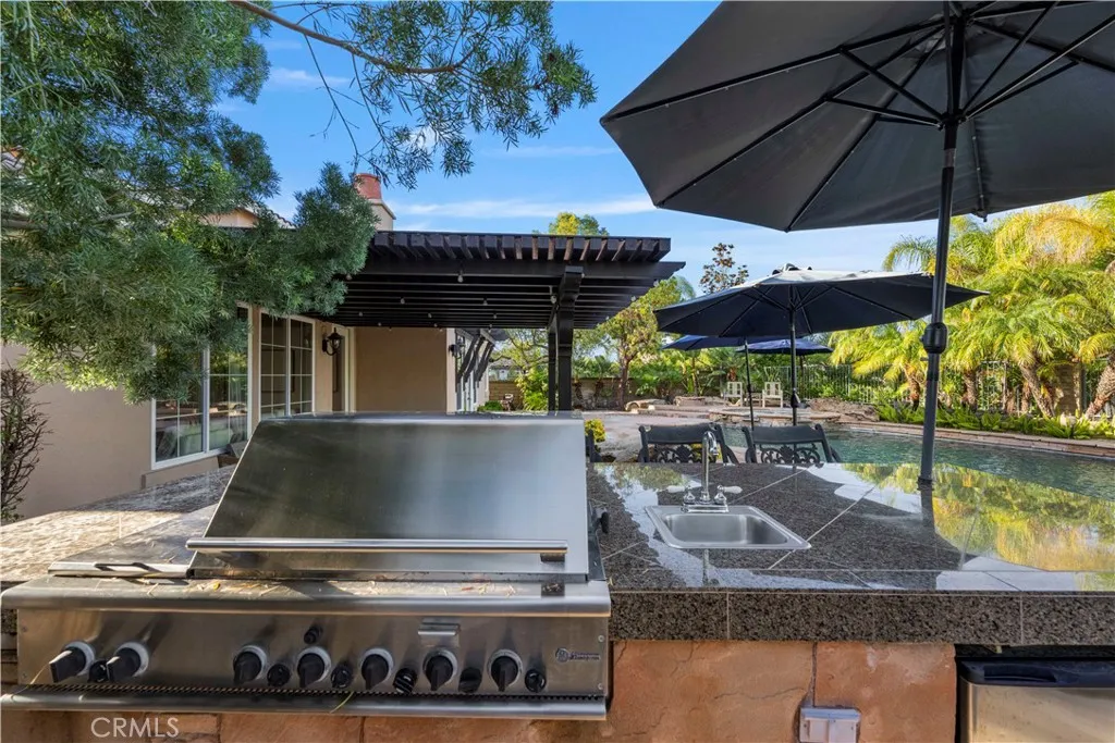 Stunning, designer-upgraded Westridge estate on an exceptional view lot with a resort-style pool! This beautifully appointed home showcases luxury living throughout, beginning with Brazilian hardwood floors, custom wrought-iron staircase, and 3 elegant fireplaces. The highly desired floorplan features a downstairs primary suite with its own fireplace, raised hearth, direct pool access, and a spa-inspired bathroom complete with travertine flooring, stone mosaic backsplash, dual sinks, oversized stone shower with dual shower heads, and a relaxing oval soaking tub. The chefs kitchen is an entertainers dreamhighlighted by a large center island, Viking appliances, built-in refrigerator, designer cabinetry, plantation shutters and crown molding. Upstairs youll find 3 bedrooms, 2 full bathrooms, and a spacious bonus room or optional 5th bedroom with access to a private viewing balcony to take in the surrounding scenery. Step outside to your private backyard oasis, featuring a pebble-tech pool and spa, dual waterfalls, covered dining area, and a custom outdoor kitchen with BBQ, bar seating, and ample room for entertaining. Situated at the end of a quiet cul-de-sac on a generous 10,000+ sq ft lot, this home offers incredible mountain and city-light views, NO Mello Roos, and access to premier HOA amenities including clubhouse, pool, spa, tennis, tot lot and more. This is luxury Westridge living at its finest.