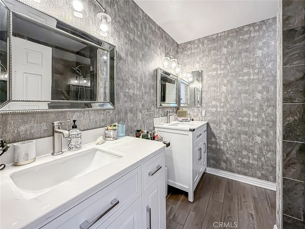 Elegant Two-Story Townhome | 1,724 Sq Ft of Comfortable, Modern Living Stonegate Villas One of the Most Private & Peaceful Locations in the Community Welcome home to this beautifully updated townhome tucked into a quiet corner of East Simi Valley, surrounded by open green space and lovely mountain views. From the moment you step inside, the bright and open layout feels inviting, warm, and thoughtfully designed. The living room features smooth ceilings with recessed smart lighting, dual-paned windows, rich tumble-travertine and wood-like tile flooring, and a charming raised-hearth brick fireplace that instantly feels like home. The space flows easily into the dining area and remodeled kitchen, where youll find stunning granite countertops, custom cabinetry, Samsung stainless-steel smart appliances, recessed smart lighting, and a breakfast bar perfect for casual meals or morning coffee. A skylight brightens the staircase as you head upstairs to the spacious primary suite. This retreat offers a cozy sitting area, recessed smart lighting, a second raised-hearth fireplace, dual custom walk-in closets with motion-sensor LED lighting, and a spa-inspired bathroom featuring French vanities with smart lighting, slate shower walls, and a relaxing alcove soaking tub. An additional private room within the primary suite works wonderfully as a nursery or home office. Two secondary bedrooms are located down the hall, each well-designed with recessed lighting and access to an updated bathroom featuring an Italian-slate walk-in shower with a built-in bench and recessed wall storage. The hom