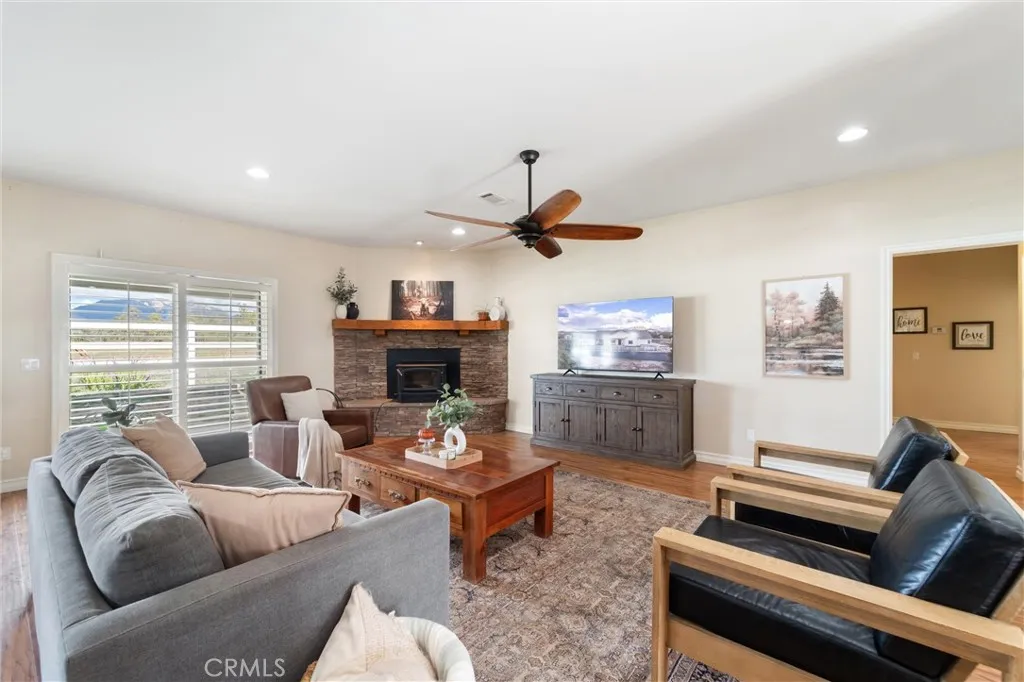 Gorgeous custom ranch home in beautiful Lake Riverside Estates on 2.61 Acres of usable land. This large upgraded home has 2607 square feet of spacious living space encompassed by 3 bedrooms and 2 bathrooms, large bonus room with built in cabinetry that could easily make a 4th bedroom, office or gym. The main living area is a great room with living room, gourmet kitchen and dining area. There is also a formal dining room with built in buffet. There are many upgrades including stainless steel appliances, hickory cabinets and large center island in kitchen. Granite countertops in kitchen and bathrooms, plantation shutters, wood burning stove in living room. For your vehicles you will enjoy the 3 car garage plus separate detached garage building. There is front and backyard fencing around the home, covered front porch, rear cement covered patios, fruit tree orchard and many mature native redshank for privacy and low maintenance native landscaping. This property has so much potential while still having room to add your own character and touches to make it yours! Sold separately is an additional adjacent lot with 2.55 acres of land for anyone wishing to have an above average lot size and still live in Lake Riverside. Asking price on additional lot is $45,000. Lake Riverside is conveniently located 30 minutes from Temecula, one hour from Palm Desert close nearby towns of Idyllwild and Julian. You will enjoy the mild 4 season climate at 3500 ft elevation. Lake Riverside Estates amenities include: gated community, stocked lake with picnic areas and playground, community equestrian c