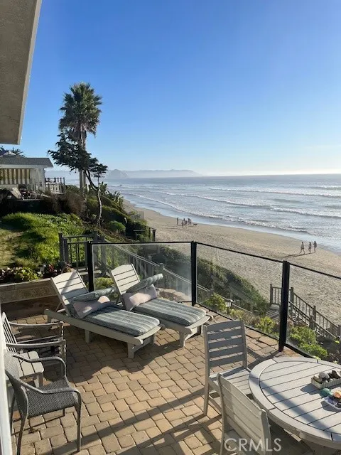 This charming oceanfront home offers spectacular 180-degree views of sand and surf as well as Morro Rock and Cayucos Pier. Upgraded kitchen with a gas 5-burner cooktop and large gas oven, granite countertops, and upgraded cabinets. The open floor plan offers a picnic-style table, as well as a round gaming table, and a sitting area overlooking the patio. As well as a stainless steel double-door refrigerator combo. The main living area includes a sofa, a love seat, and a gas-log fireplace. All non-bedroom floors are finished with a light wood grain laminate. The beautiful two-bathroom showers and tub walls are finished with an impressive array of tilework. The 4 bedrooms are ample in size with an armoire and dressers. From the living area, entering through the glass slider to the inviting patio features paver floors, tempered glass wind break, and an outdoor shower. Has a private stairway down to the beach. The large garage includes a workbench area and a fold-down ladder for more storage, there is also a washer and dryer.
