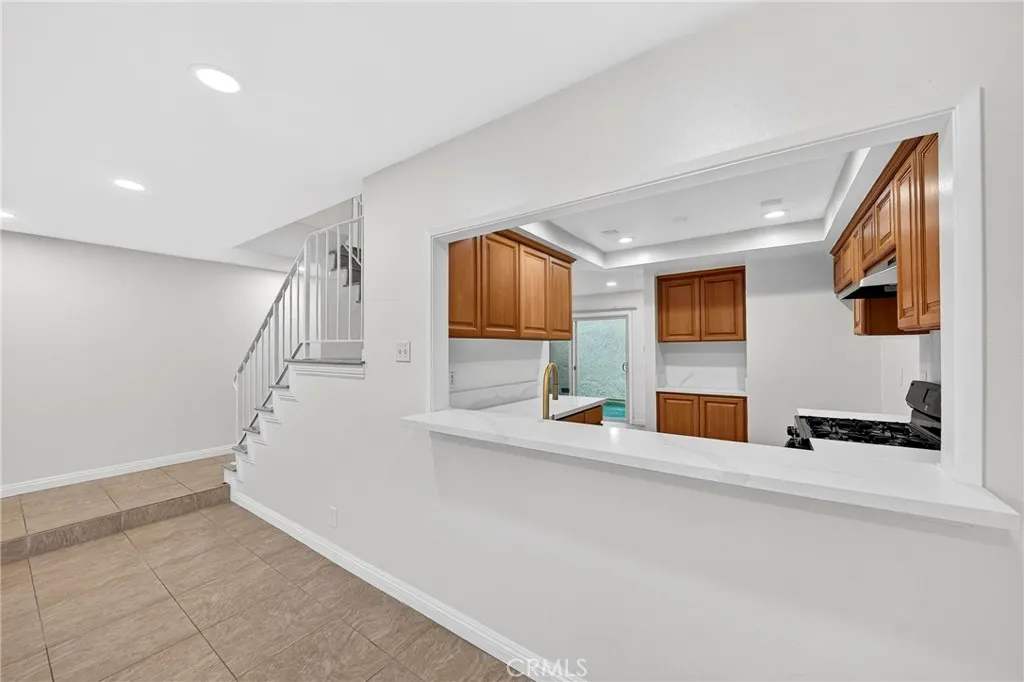 Welcome home to The Fairway! This move-in ready 2-bedroom, 1.5-bathroom. Enjoy the bright and inviting formal living room, enhanced by abundant natural light and a cozy gas fireplace. Adjacent to the kitchen, youll find a flexible space perfect for a family room or dining area to suit your daily lifestyle. The kitchen features ample cabinet storage, quartz countertops, a gas range, recessed lighting, and a convenient pass-through window to the living room. Upstairs, both bedrooms include their own sink and vanity, sharing a central shower/tub. One bedroom also offers access to a private deck. With central heat and air conditioning. Parking is easy with a 2-car garage that includes laundry hookups and additional storage. The Fairway community is well-maintained and offers peaceful greenbelts, along with a sparkling pool and spa. Enjoy access to highly rated Cerritos schools and the convenience of being close to the 91 and 605 freeways for effortless commuting. Shopping, dining, and entertainment are just blocks away. Dont miss this fantastic opportunity! HOA includes water and trash.
