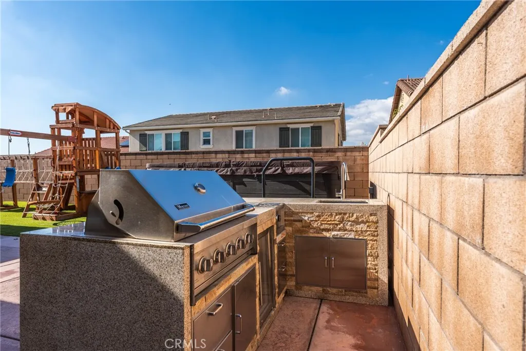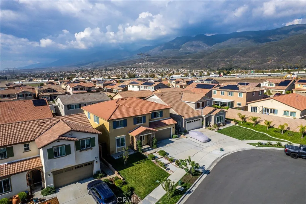 Welcome to this stunning 2022-built home located in one of Fontanas most desirable gated communities, perfectly situated on a quiet cul-de-sac. Designed with luxury, comfort, and modern efficiency in mind, this beautifully upgraded residence offers exceptional value and turnkey living. Step inside to an open-concept floor plan featuring high-end finishes throughout from Vinal flooring and designer touches to a bright, spacious living area ideal for both everyday comfort and entertaining. The gourmet kitchen impresses with sleek countertops, quality cabinetry, and stainless-steel appliances. The outdoor spaces are equally impressive. The backyard has been fully upgraded, offering a refined and low-maintenance retreat perfect for gatherings, relaxation, or play. The front yard has also been professionally landscaped, enhancing the homes curb appeal and creating a warm welcome every time you arrive. Energy efficiency is a major highlight with fully paid-off solar panels, providing significant long-term savings with no lease or financing to assume. The garage is finished with custom cabinetry and a high-end epoxy floor, offering exceptional storage and a clean, showroom-quality look. Located in a secure gated community, this home offers privacy, peace of mind, and a lifestyle of convenience just minutes from parks, shopping, dining, and major commuter routes. A true turnkey gem in Fontana modern, efficient, upgraded, and ready to move in.