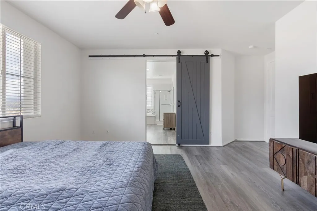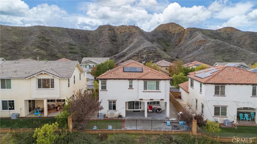 VIEWS! Welcome to this beautifully updated 4-bedroom, 2.5-bath home offering over 2,600 sq. ft. of comfortable, contemporary living in one of Valencias premier gated communities. Positioned to capture beautiful hillside and neighborhood views, this home blends space, style, and functionality. Inside, youre welcomed by soaring ceilings, recessed lighting, and bright, open living areas that set the tone for both relaxation and entertaining. The main level features a seamless flow from the family room to the kitchen, creating an inviting central gathering space. Durable laminate flooring adds a clean, modern feel throughout the home. The open kitchen is a standout, featuring a large center island, granite-style counters, stainless steel appliances, and generous cabinetry. Its open layout makes everyday cooking and hosting effortless. All four bedrooms are located upstairs, offering a quiet and private retreat. The primary suite includes a walk-in closet along with an ensuite bath featuring a soaking tub, separate walk-in shower, and dual vanities. Additional bedrooms are well-sized with easy access to upgraded bathrooms. Step outside to a welcoming backyard space with a covered patio, perfect for outdoor dining or relaxing while taking in the views. The home also includes solar, helping keep monthly electricity costs low. Living in West Hills means access to exceptional community amenities including pools, a spa, clubhouse, parks, and scenic walking pathsideal for enjoying the outdoors just steps from home.