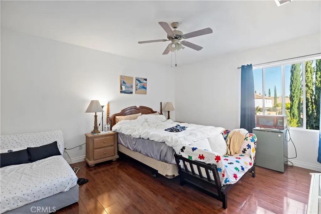 Welcome Home! Step into this stunning luxury family residence offering 5 bedrooms +, 3 bathrooms, and a spacious 3-car tandem garage across 2,705 sqft of beautifully designed living space. With elegant wood flooring throughout, this home blends timeless style with modern convenience. Enjoy peace of mind with a fully paid-off 7.26 kW solar system (installed 2019), Tesla Powerwall 2 (2023), and EV wall connectorall seamlessly integrated into one clean energy ecosystem. Plus, with no HOA, no Mello Roos, and a low tax rate, this home is as practical as it is luxurious. The landscaped front yard greets you with vibrant flowers, while the backyard is a true retreatfeaturing multiple fruit trees, a spacious covered patio, and a row of tall trees for privacy. Whether its family gatherings, quiet evenings, or playful afternoons, this outdoor space is designed for joy and relaxation. First Floor: Guest rooms and a full bath make hosting loved ones or multi-generational living effortless. Grand Entry: Soaring ceilings and a sun-filled formal living room create a warm, welcoming atmosphere. Gourmet Kitchen: An open-concept design with an oversized island, quartz countertops, breakfast bar, generous walk-in pantry, and ample counter spaceperfect for both everyday meals and entertaining. Upstairs Comforts The expansive master suite offers a spa-like retreat with a walk-in shower, soaking tub, dual sinks, and a large walk-in closet. Three additional versatile bedrooms and a conveniently located laundry room complete the upper level, ensuring comfort and functionality for the whole family.