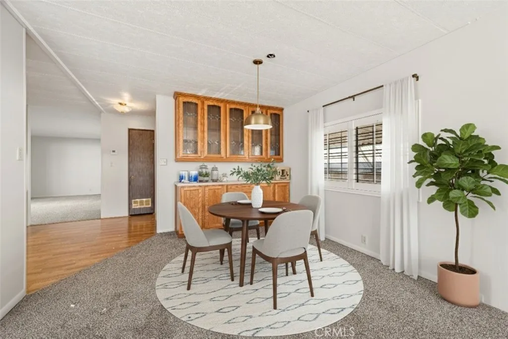 An exceptional opportunity awaits with this spacious 2-bedroom, 2-bathroom manufactured home with a huge bonus room, ideally located in a sought-after Arroyo Grande community. Situated on an approximate 1,736 sq ft lot, this property delivers generous living space and a prime chance for personalization. The bright interior features an open floor plan with expansive living areas, including a sizable living room and a separate family room. Both spaces are finished with neutral paint, plush carpeting, and are illuminated by large windows fitted with classic shutters, ensuring a cheerful and inviting atmosphere. The well-appointed kitchen is defined by classic wood cabinetry offering significant storage, and it flows seamlessly into the dedicated dining area, which boasts an attractive built-in hutch with glass display frontsperfect for entertaining. The two bedrooms are roomy and comfortable. The primary suite features elegant gold-framed mirrored closet doors and a private en-suite bathroom with a classic enclosed shower. The second full bathroom is equally functional, offering extended vanity space and cabinet storage. The bonus room could be used as a bedroom since it has an oversized closet. The homes exterior is complemented by beautiful landscaping, a paver-stone walkway, and steps leading up to a covered, sheltered porch ideal for enjoying the mild climate. Convenient covered carport parking is also included. Combining location, size, and potential - this home is ready for its next chapter ... as your new home!