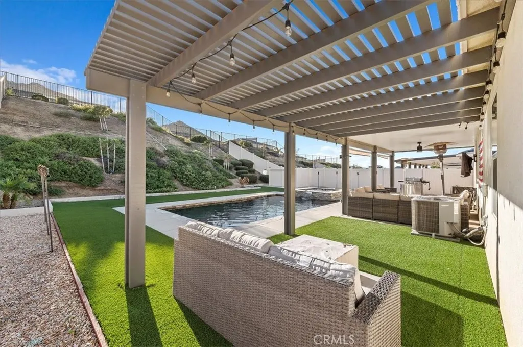 Open House scheduled for Next Sunday, December 14th dont miss it! Welcome to 20961 Bison MesaLocated in the highly desired Spring Mountain Ranch community! This beautifully single story 3 bedroom, 2 bath pool home features a spacious master retreat and an airy open-concept layout designed for comfort and modern living. The kitchen shines with a large center island, sleek countertops, and stainless steel appliancesperfect for cooking, hosting, and everyday convenience. Step into the ultimate entertainers backyard with a heated pool & spa, cozy fire pit, BBQ grill with built-in natural gas line, covered patio, and outdoor TVideal for gatherings, weekend hangouts, or peaceful evenings at home. Located in the scenic foothills, this home is perfect for outdoor enthusiasts, with miles of hiking and biking trails and a 6-acre community park just a short walk away. Enjoy peaceful, nature-filled living while remaining close to shopping, dining, UC Riverside, and convenient freeway access.