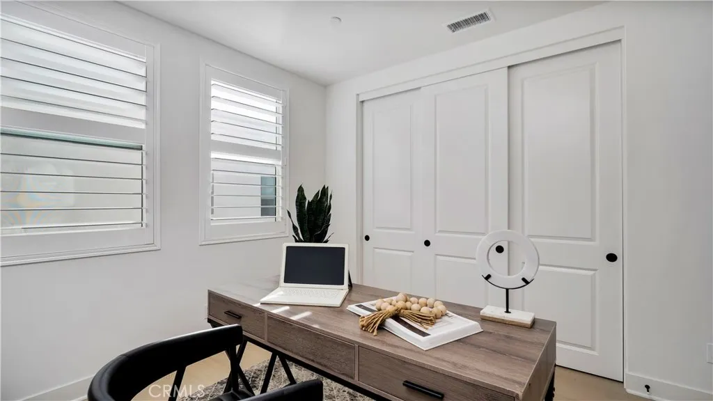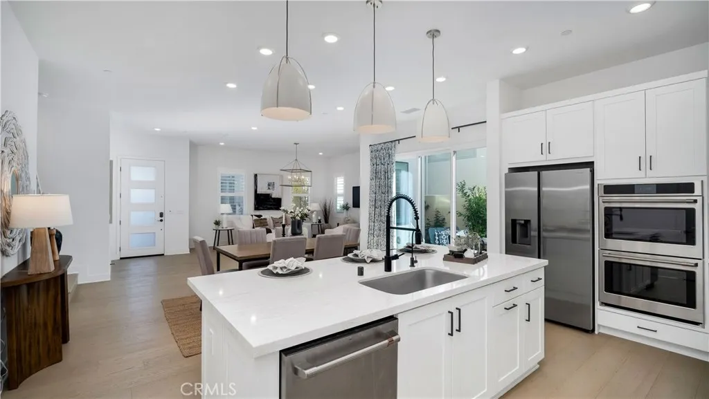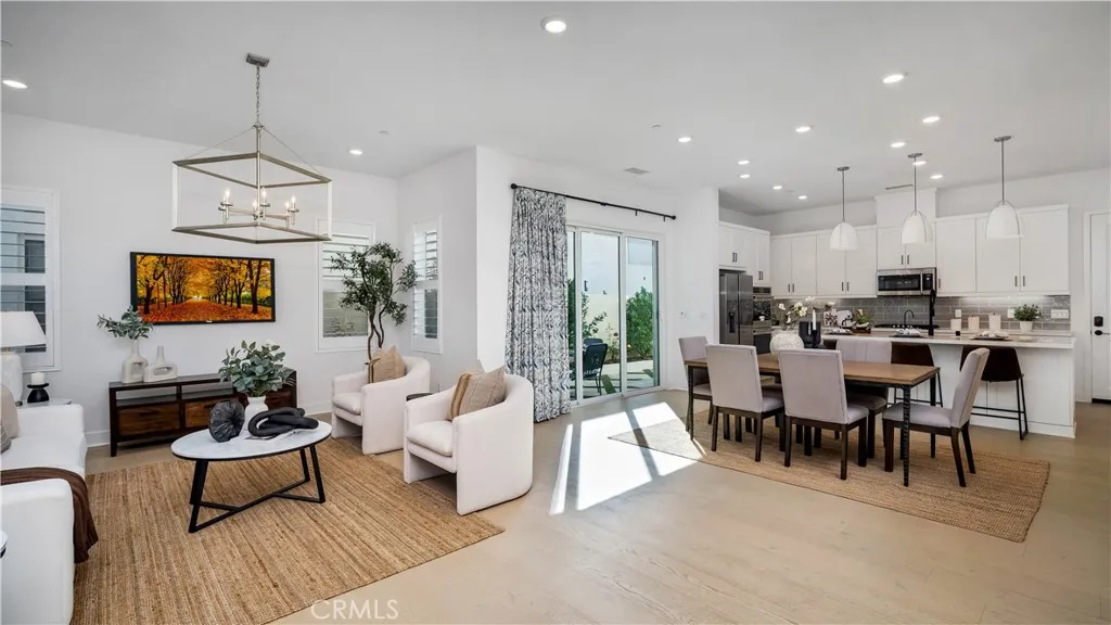 Welcome to 138 Yugen, a beautifully upgraded DETACHED home with nearly 3,000 sqft of thoughtfully designed living space tucked within the vibrant Solis Park enclave of the coveted Great Park Neighborhood in Irvine. From the moment you enter, youre greeted by natural light that pours through thoughtfully placed windows, illuminating rich hardwood floors and an open-concept layout designed for modern living. The expansive great room offers an inviting living and dining space that flows seamlessly into a chef-inspired kitchen - perfect for both everyday living and entertaining. At the heart of the kitchen is a large center island with counter seating, surrounded by sleek quartz countertops, a designer tiled backsplash, soft-close white cabinetry, and premium Caf Series stainless steel appliances. A walk-in pantry adds both function and flair, making this kitchen as practical as it is beautiful. Upstairs, the spacious primary suite serves as a private retreat with a large walk-in closet and a spa-like ensuite bath featuring a tiled walk-in shower, a deep soaking tub, and dual vanities. Three additional bedrooms are well-appointed, ideal for family or guests, and the third-floor bonus room - with its own full bath and access to a private rooftop terraceoffers mountain views and endless possibilities. Whether you envision a media room, home gym, guest suite, or office, this flexible space is designed to adapt to your lifestyle. Additional highlights include recessed lighting throughout, custom plantation shutters, a professionally landscaped yard perfect for outdoor gatherings, a