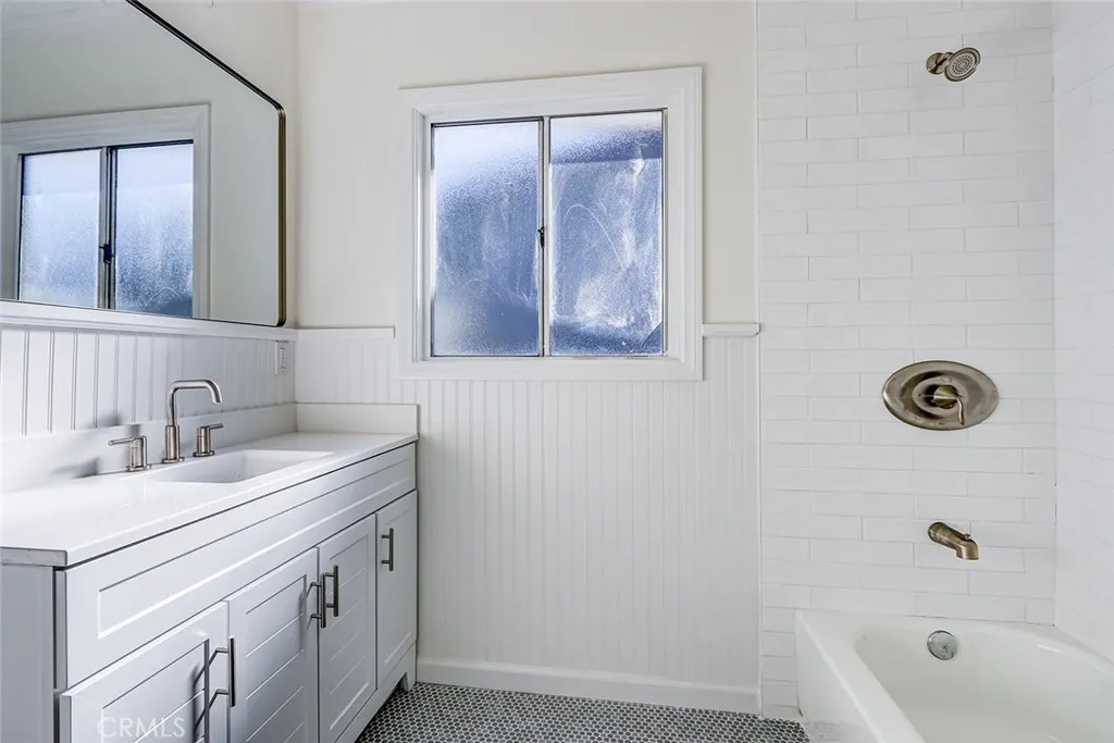 Tucked away on a peaceful cul-de-sac on one of the most desirable streets in Gardena, this spacious 3-bed/2-bath home just underwent a complete remodel inside and out. Upon arrival you're instantly greeted by tons of curb appeal with a timeless coastal exterior featuring white vertical siding and brick, newer windows, a large grass front yard, and fresh paint. Designed by top interior design firm Live Oak Interiors, this charming home has an ideal floor plan with an open concept living/dining area that opens up to the spacious covered patio and backyard. The large 150 square foot covered patio off the living room allows for the ultimate indoor/outdoor living and entertaining. The hardscaped backyard has tons of space as it wraps around the side of the property, allowing tons of room for kids to play. The chef's kitchen comes fully equipped with stainless appliances, quartz countertops, white shaker cabinets with brass hardware, and a custom Arto Brick handmade backsplash. Three large bedrooms each have ample closet space and tons of light. The two bathrooms have both been completely remodeled with new plumbing, fixtures, vanities, classic penny and subway tile, and a new tub in the hall bathroom. The laundry area off of the kitchen comes with a newer side by side washer/dryer included and additional cabinet storage. Upgraded mechanical systems in the house were fully permitted including central AC, newer windows and large living room slider, new copper and ABS plumbing throughout, new kitchen rewiring, an upgraded 200 amp electrical panel, new water heater, and a brand new
