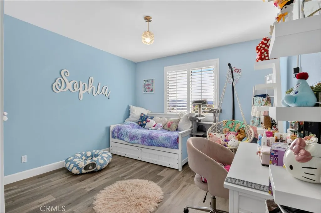 Welcome to this stunning 2021-built home tucked away on a peaceful cul-de-sac, offering the perfect blend of modern comfort, style, and energy efficiency. With 5 spacious bedrooms and 3 beautifully appointed bathrooms, this home is designed to accommodate families of all sizes. Step inside to discover an open and inviting layout filled with natural light, upgraded finishes, and thoughtful details throughout. This home also features a bright and versatile office space at the entry level, perfect for remote work or study, as well as a spacious second living area upstairs, ideal for a media room, playroom, or relaxing retreat. The home is equipped with owned solar, providing exceptional energy savings, along with a whole-house water filtration and softener system for added convenience and wellness. The heart of the home flows effortlessly into the expansive backyard, an entertainers dream featuring generous space for gatherings, outdoor dining, play, or even future customization. Whether youre hosting weekend barbecues or enjoying quiet evenings under the stars, this outdoor area truly elevates the lifestyle experience. The home showcases upgraded laminate flooring throughout for a fresh, modern feel, along with beautifully installed wood shutters that add elegance, privacy, and timeless charm to every room. The community offers an amazingly low monthly HOA fee while still providing incredible amenities, including resort-style pools, baseball fields, playgrounds, and beautifully maintained common areas for endless enjoyment, completing this exceptional property. Modern, effici