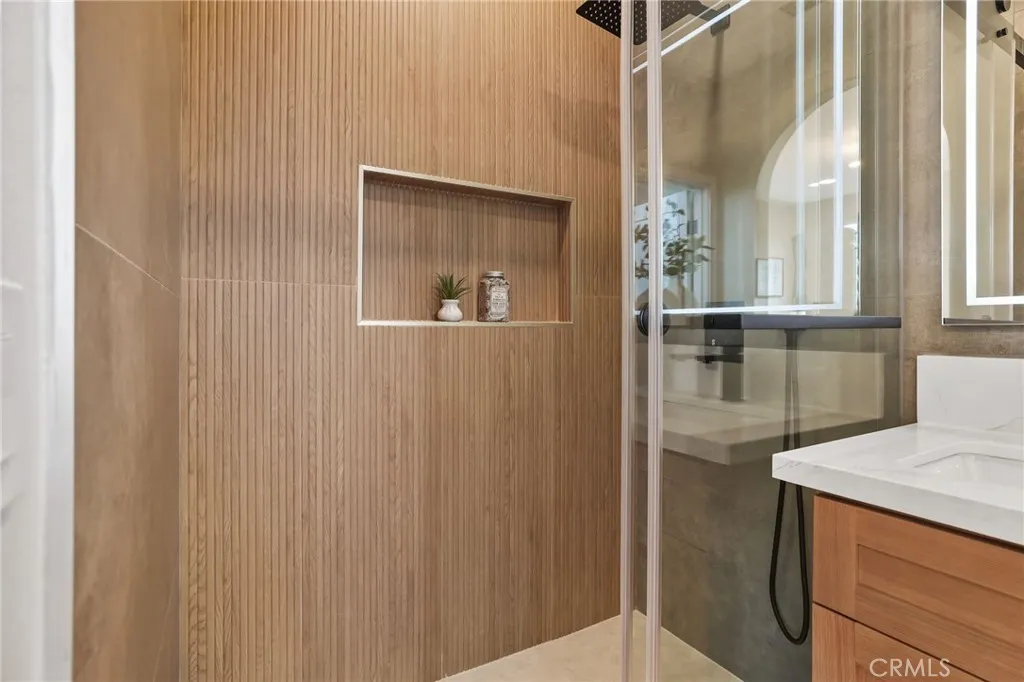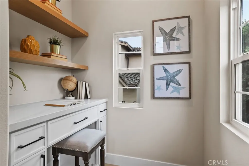 COMPLETELY REMODELED and FULLY DETACHED (no shared walls), this corner-lot Ivy Wreath home is ideally located in the highly sought-after Quail Hill community. The residence has been beautifully refreshed with fresh interior paint and premium luxury vinyl plank flooring throughout. The bright and spacious great room features built-in shelving, creating the perfect space for both everyday living and entertaining. The stunning chefs kitchen overlooks the dining area and great room and showcases quartz countertops, sleek white cabinetry, and new stainless-steel appliances. Enjoy indoor-outdoor living with a balcony just off the breakfast nook, perfect for morning coffee or evening relaxation. All bedrooms offer the privacy of en-suite bathrooms, plus an additional powder room for guests. Every bathroom has been upgraded with new cabinetry and quartz countertops. The versatile floor plan includes one bedroom on the first level and two bedrooms on the third level, along with a dedicated study nook featuring a built-in desk and shelving, ideal for working from home, studying, or homework time. Additional highlights include inside laundry and a two-car garage with new garage doors and epoxy flooring. A private front patio provides a welcoming outdoor retreat. Enjoy a prime location within walking distance to Alderwood Elementary, community pools, parks, shopping, and restaurants, and just minutes from the Irvine Spectrum Center for premier business, entertainment, and dining.