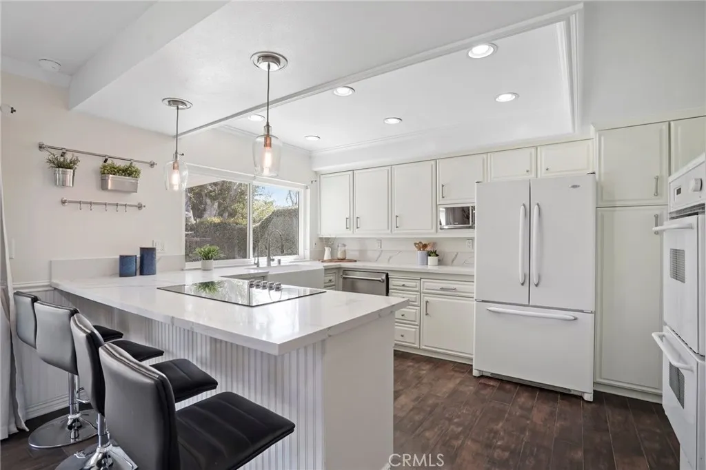 Welcome to this beautifully updated single story home nestled in a quiet, family friendly neighborhood in Placentia. This thoughtfully remodeled residence offers 4 bedrooms and 2 bathrooms on a generous lot, blending classic character with modern comfort. Step inside to a bright and inviting floor plan featuring recessed lighting, wood tile flooring, crown molding, and a cozy living room with a fireplace that flows seamlessly into dining and kitchen areas, creating an ideal space for everyday living and entertaining. An updated kitchen features quartz countertops, farmhouse sink, breakfast bar seating, abundant cabinetry, and quality appliances, making it perfect for casual meals or hosting guests. Each bedroom offers comfortable space and flexibility for family, guests, or home office use, while primary suite includes a private bath with tasteful finishes. A private backyard provides a peaceful retreat with covered patio, lush landscaping, and plenty of room to relax or entertain. Additional highlights include two car garage with epoxy flooring and ample driveway parking, along with major upgrades such as new HVAC, updated plumbing, sewer line, electrical panel, and security system, making this home truly move in ready. Convenient location near shopping, dining, parks, and easy freeway access, within award winning Placentia Yorba Linda Unified School District, creates a rare opportunity to own a turnkey home in one of North Orange Countys most sought after communities.