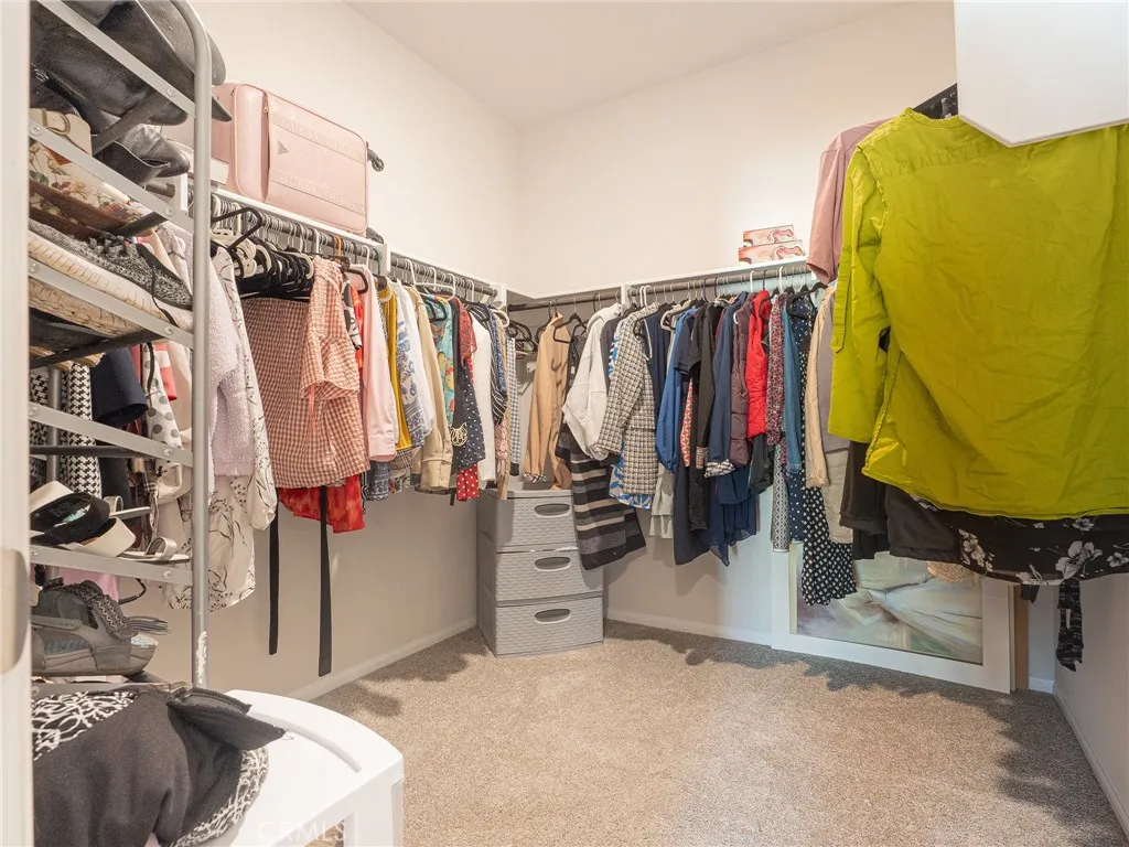 LIKE NEW SPACIOUS SINGLE STORY HOME | PAID OFF SOLAR + 4 BEDROOMS + 3 BATH + LARGE BACKYARD This home is nestled at the end of a cul de sac and within minutes of the i215 and shopping and dining. As you enter the home you'll notice the spacious 9 foot ceilings upgraded luxury vinyl floors. To your right you'll find 2 bedrooms plus a full bathroom with double sinks and a shower/tub combo. Down the hall You'll find the 3rd bedroom, garage access, and a large laundry room. The living space is nice and open perfect for entertaining and has tons of natural lighting. The white upgraded kitchen cabinets and white ice quartz countertops give tons of storage and space for the chef in the house. You'll also notice a spacious walk in pantry at the corner of the kitchen. The living room and dining area are spacious and offer plenty of space to entertain guests. The primary bedroom is off the main living area and offers a spacious walk in closet, a private primary bathroom with double sinks and a shower. The backyard is large and the perfect blank canvas for your dream backyard! Within the community you'll find walking trails and a playground perfect for little ones. Schools, stores, and freeway access are all within minutes from this home making it a perfect location for every day living.