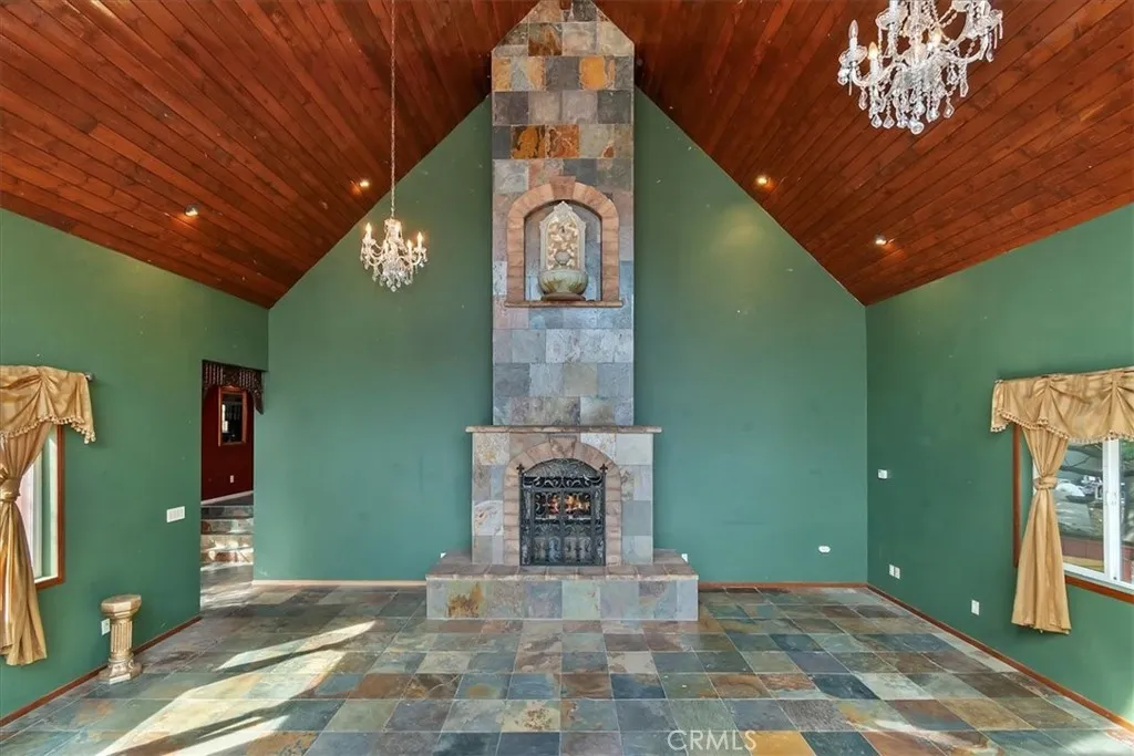 Stunning 5-Bedroom, 4-Bath Mountain Home Near Lake Gregory. This exceptional 5-bedroom, 4-bath residence offers a perfect blend of comfort, space, and mountain charm. The property features RV parking, space for up to six additional vehicles, and an oversized two-car garage. The beautifully landscaped exterior includes a tranquil pond, built-in outdoor BBQ, fireplace, and a versatile outdoor room ideal for storage or additional living space. Inside, the grand front room impresses with vaulted ceilings, a dramatic wall of windows, and a cozy fireplace. A large room just off the entry, currently used as a study, can easily serve as a main-level bedroom. The spacious kitchen boasts ample counter space and a walk-in pantry, opening to a dining area and expansive living room with yet another fireplaceperfect for entertaining. Multiple outdoor living areas take full advantage of the mountain views, including three separate decks and an enclosed patio currently used as a game room. Upstairs, the primary suite features dual closets, its own fireplace, and a luxurious bathroom with a walk-in shower. Four additional bedrooms provide generous space; two include private decks with stunning views, and one offers its own ensuite bath. Whether as a full-time residence, a private retreat, or a vacation rental, this home delivers versatility and mountain living at its finest. Conveniently located just minutes from town and Lake Gregory, with easy commuter access, its the ideal balance of escape and convenience.