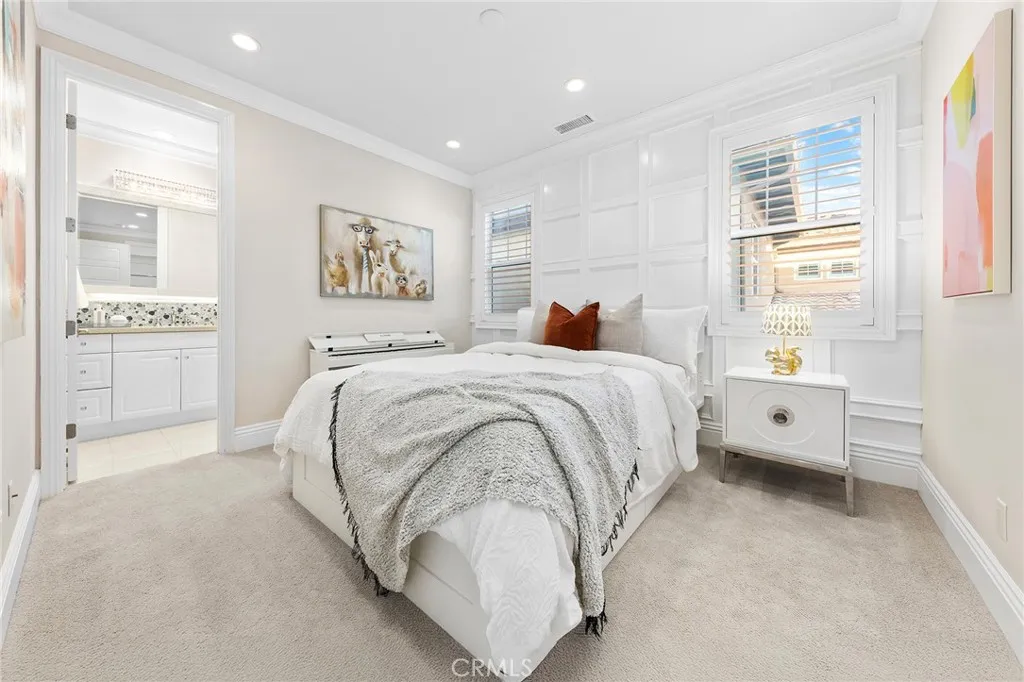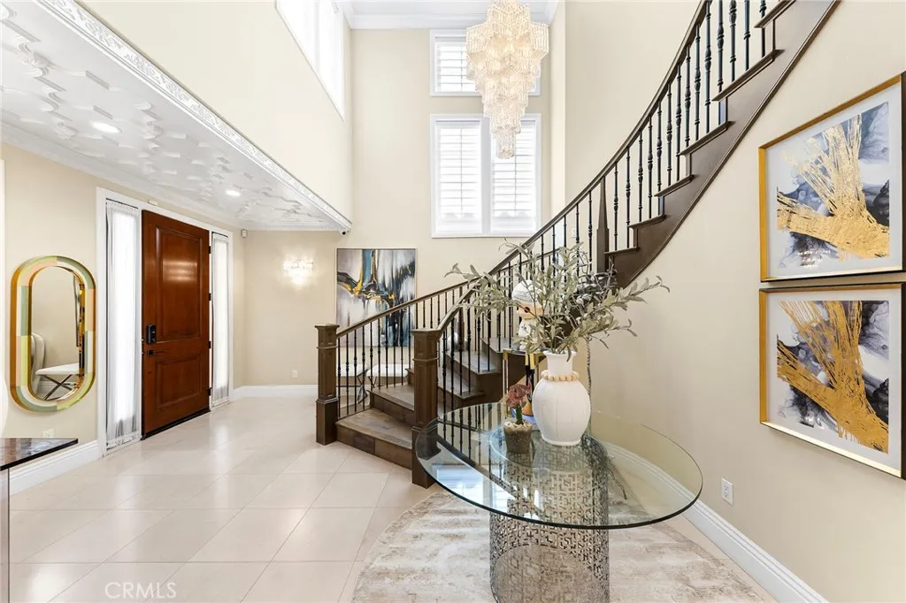 HUGE PRICE REDUCTION! PRICE TO SELL! MUST SEE TO BELIEVE! This customized and highly upgraded luxury home in The Great Park blends modern French aesthetics with European-imported materials, creating a truly unique and elegant living experience. Professionally designed by renowned interior designer w/over $1.7 million in upgrades. Largest Model in the Community, the home boasts the most desirable open floor plan with Imported natural stone and upgraded carpet. Kitchen opens to expanded great room w/ adjoining dining area & family room w/ built-in cabinets and High-end appliances. Large center islands with gorgeous quartz counter tops make the kitchen a great place not only for cooking but also for family gatherings and entertaining friends. Main floor bedroom & full bath, marble fireplace mantels, Italian made family room TV cabinet and upstairs with hardwood floors. Spacious master suite plus three additional en-suite bedrooms and an upstairs laundry room for added convenience. Expansive, flat backyard a rare gem in Irvine ideal for outdoor living and entertaining. Enhanced by $300K in Feng Shui-inspired landscaping with thoughtfully selected plants to promote prosperity and harmonious energy flow. Upgrades throughout include: Custom backsplash, Quartz Countertops, Subzero Refrigerator in Kitchen. Soundproof Media Room. Decorative wall panels in Great Room, inspired by Italian interior design. Marble Fireplace Mantle in Master Bedroom. Custom luxury furniture and draperies, transitional shades remote control for high ceiling & wood shutters. Custom 3D leather panels and w