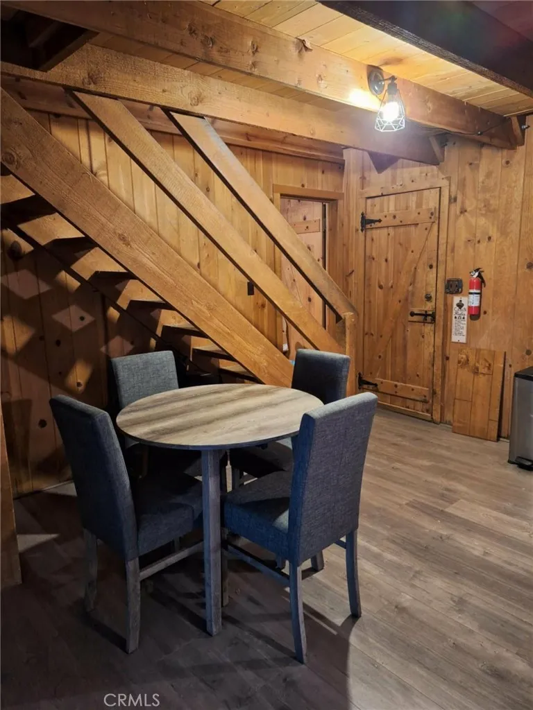 Beautiful mountain cabin in the trees. Home is set below the street for privacy, with off-street parking for 2 cars. It has a sturdy, 4-foot-wide staircase down to the home, for ease of access, with storage shed built under the staircase, to store your kayaks for taking to nearby Lake Gregory. As you enter the home, you are surrounded by cedarwood walls and open beam ceilings, with an open-concept design. The kitchen has quartz countertops and leads to a large balcony surrounded by trees, and no neighbors in sight. The master bedroom and bathroom are located on the first floor, and there is a jack-n-jill door allowing access to the bathroom from the master, or the living room. Hearth installed in living area and chimney still exists from previous wood-burning stove. Easy to install a new one. Large pantry for storage and additional linen storage in full bathroom. Upstairs, you will find a large loft bedroom, with room for 4 twin beds. Use as a bunk room for guests, along with the smaller 6x9 loft that will fit a full-sized bed or an office area. Under the home, there is a large build-up that can be finished and turned into an additional bedroom that can be access by creating a staircase under the stairs in the living room. Best part? No HOA!!! Nearby, you can enjoy Lake Gregory year-round. In the summer, the lake boasts a large water park with water slides, inflatable slides and trampolines and obstacle courses for all ages. Rent a duffy boat, kayak or paddle board, or spend a day fishing for bass, catfish, or trout. The beach area is great for sun bathing or swimming and l