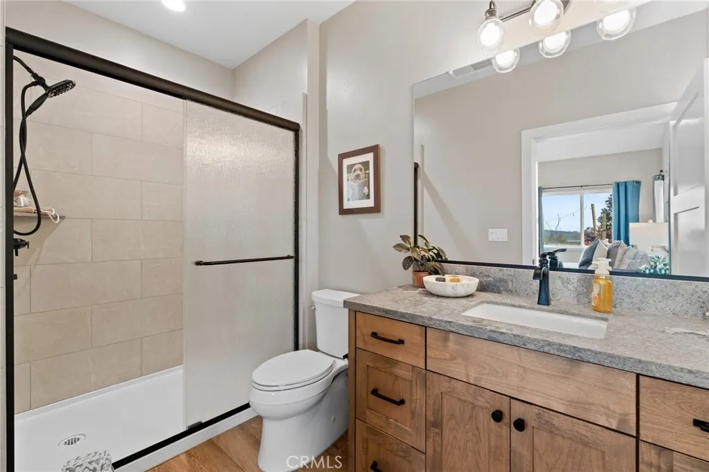 Some people see a ten-minute drive through the canyon. The right buyer sees something differenta reset and a buffer between the world and home. Behind the gate, this custom Wayland Construction built home sits on 9 private acres with sweeping foothill views. Designed for modern comfort, this brand-new 3 bedroom, 2 bath home features stone countertops, laminate flooring, quality appliances, a spacious kitchen island and a built in pantry offering excellent storage. A thoughtful split floor plan places the primary suite on one side of the home, with two additional bedrooms and a full bathroom on the opposite side for added privacy. A dedicated laundry room adds everyday functionality. Outdoor living is at the heart of the property, with a swimming pool, and outdoor kitchen built for long summer evenings under open sky. The acreage also includes a barn with two separate stalls and a small shop at the rearideal for animals, projects, or additional storage. Two RV hookup areas offer flexibility for guests or travel accommodations, with one featuring washer, dryer and refrigerator connections located below an elevated gazebo, creating a unique treehouse style perch to enjoy the surrounding views. A 40-foot shipping container and shed provides additional storage space. The home also features fully owned solar for long-term efficiency and is located within a recognized Firewise community. A rare opportunity to enjoy privacy, views, and space to breatheall within Chico city limits.