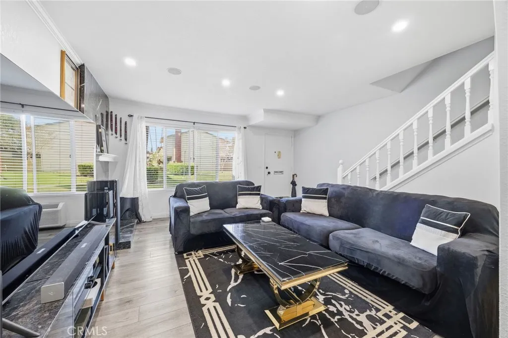 COMPLETELY RENOVATED TURNKEY HOME WITH DIRECT 2 CAR GARAGE ACCESS AND IN UNIT LAUNDRY. This beautifully remodeled Tustin Place residence has been extensively upgraded and renovated. The brand new gourmet kitchen is the centerpiece of the home, featuring all new custom cabinetry with soft close drawers and doors, quartz countertops, a full custom tile backsplash, stainless steel appliances, and new modern recessed lighting with updated wiring. Home also has highly sought after in unit laundry for double stacked washer and dryer and custom built cabintery allowing for plenty of extra storage. The flooring has been completely redone throughout the entire home, creating a seamless, modern look from top to bottom. Additional interior upgrades include fresh neutral paint, dual pane windows, custom crown molding, and new baseboards. The electrical panel has been upgraded along with new wiring and recessed lighting throughout. Major improvements also include a new water heater, new toilets, and updated vanities and shower. One of the most desirable features is the rare direct access private 2 car garage, complete with a new door, motor, and epoxied flooring. The entire row of garage exteriors throughout the community has also been fully redone, enhancing curb appeal and long term value. Lightly lived in for only two years since completion of the renovation.