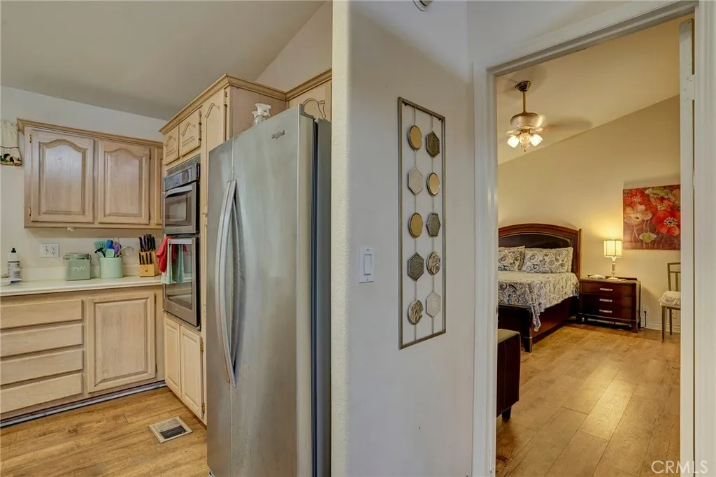This unique home does not have steps up to the front door or patio slider. The front/side of this home is on ground level for easier access or handicapped access. This home is on an oversized lot with an amazing yard with a built-in fountain, built-in natural gas BBQ, grass, and mature trees for added shade and privacy. This 1995 1982 sq ft Silvercrest/Westwood has 3 bedrooms, 2.5 baths, and an extra-large attached garage with enough parking for 3 cars plus a large storage room. The spacious open floor plan is light and bright with several skylights and a caned skylight in the 2nd bedroom. All 3 bedrooms have walk-in closets. The 2 secondary bedrooms have a Jack and Jill bathroom with a stall shower with a seat bench. The kitchen is modern with a large island with bar seating, a built-in gas cooktop, and is open to the living room and dining room. The living room has a fireplace with gas logs. One of the bedrooms has a double door entry and a custom-built-in desk/work station (not attached, can be removed), and a very large walk-in closet. The master bedroom is very large and has a walk-in closet off the large master bathroom. The master bath has a Roman-style tub and a separate stall shower. The dining room is very large and has 2 skylights with retractable blinds. The laundry room has a 1/2 bath off of it and direct garage access. There are 2 water heaters (one is newer), so you will have plenty of hot water. This home is one of a kind and will sell quickly. Some of the recent upgrades include: new plumbing, new water heater, newer quality wood-look vinyl flooring, owned