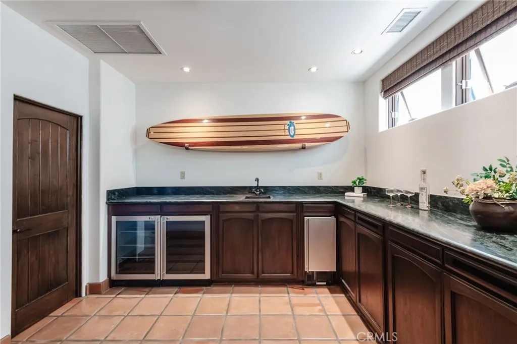 Custom built Spanish Mission Style Home in an A location, walking distance to the beach downtown and Grandview School. This home features over 3600 square feet including a full basement with media room, two wine fridges and a half bath. Sunny backyard. Freshly painted, newly refinished hardwood floors and custom tile. Step into soaring ceilings, transitioning into a cozy living room filled with light, beautiful walnut flooring and stone fireplace. Great room is perfect for family gatherings. Light and bright family room with French Doors leading to patio and backyard and open to a fully stocked Chef's kitchen with 6 burner Thermador stove, griddle, hood and double oven. Stainless steel fridge, dishwasher, warming drawers and double sinks. Breakfast bar plus kitchen nook provide multiple dining options. Formal dining room provides for more intimate gatherings. Beautiful low maintenance turf yard with fire pit and built in BBQ. Primary suite has sunny balcony, walk in closet, his and her sinks, jacuzzi tub and steam shower with rain head. 3 more bedrooms upstairs including one in suite room and one room currently being used as a home office Fully smart wired with Creston system controls and central air conditioning. Great family street where you can park your car for the weekend and walk or use your bikes to get to the beach or anywhere in Downtown Manhattan Beach.