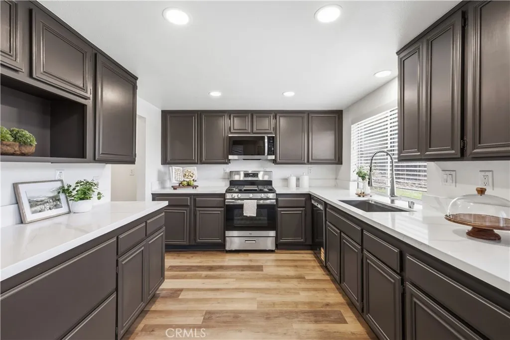 Welcome to Oakridge in Newhall a small, private tract offering one of the best locations and lot opportunities under $1 million in Santa Clarita. Ideally situated with ultra-easy access to the 5 Freeway and just minutes from local elementary, junior high, and high schools, this property combines convenience with privacy. Tucked away on a desirable flag lot with an extra-long driveway, the home provides ample space for multiple vehicles while offering a quiet and private setting. Inside, the home features numerous recent upgrades including fresh new grass and irrigation, fresh interior and exterior paint, recessed lighting throughout, newer ceiling fans in all bedrooms, quartz countertops, luxury vinyl flooring throughout, updated light fixtures, newer AC, newer water heater, and all new kitchen appliances. The expansive lot of nearly 10,000 sq ft offers beautiful mountain views and endless possibilities build a pool, create an outdoor entertaining space, or store your RV, boat, and toys with room to spare. With no HOA and no Mello Roos, this property offers incredible flexibility and value. The home features four bedrooms upstairs plus a versatile bonus room on the main level that can easily function as a fifth bedroom, office, or guest space. Opportunities like this are rare a private setting, large lot, and prime location all in one.