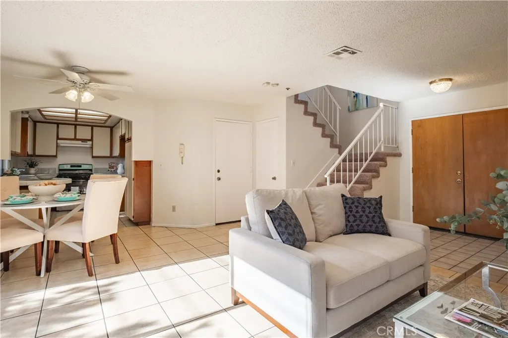 Discover this charming two-story condo in a highly sought-after gated community. As a desirable end unit with only one shared wall, this home offers enhanced privacy. The spacious master suite features soaring vaulted ceilings, while the master bathroom is bathed in beautiful natural sunlight. This well maintained residence showcases an impressive array of recent upgrades and improvements. Major updates include a new water heater, fresh interior paint, new garage door, stove, and new carpeting. The complete HVAC system, including both the A/C compressor and furnace, was replaced within the last two years for your comfort and peace of mind. The home has been further enhanced with a new exterior back door, window blinds, updated upstairs hallway tile, and professionally reglazed tubs in all bathrooms. Planty guest parking outside and insider the gate. Perfectly positioned for modern living, this property offers unbeatable convenience with easy access to shopping centers, fine dining establishments, and major freeways.