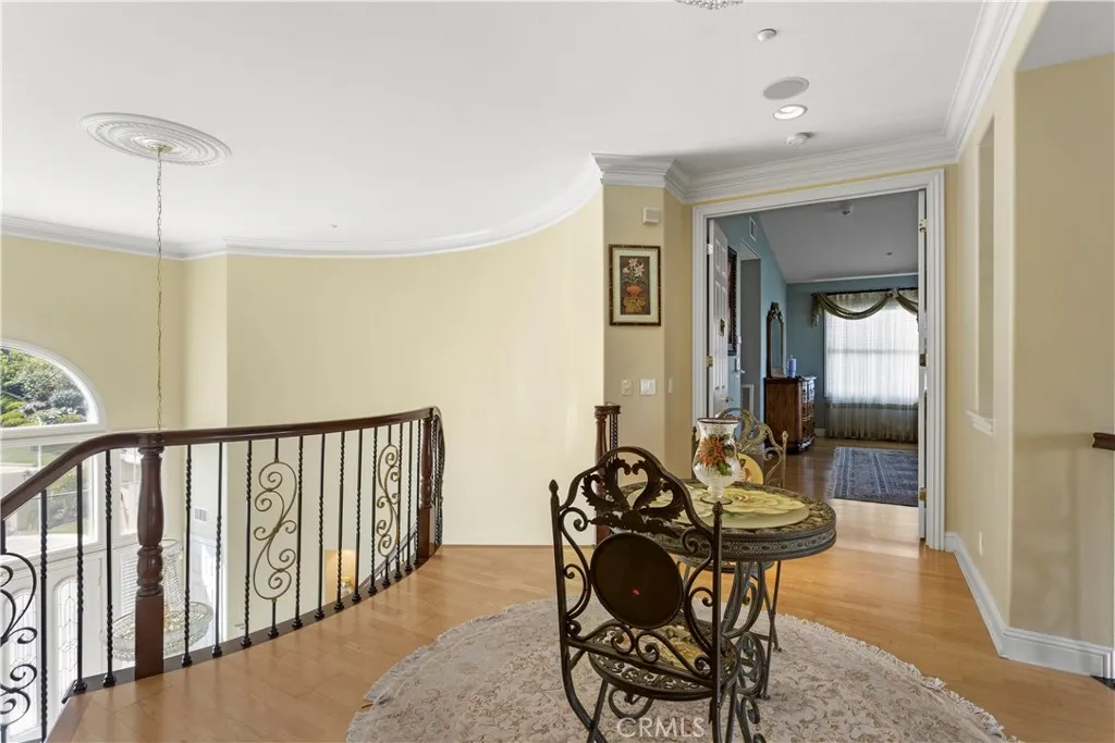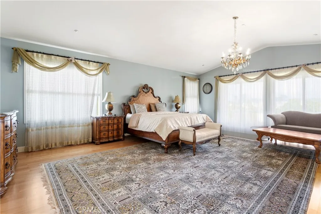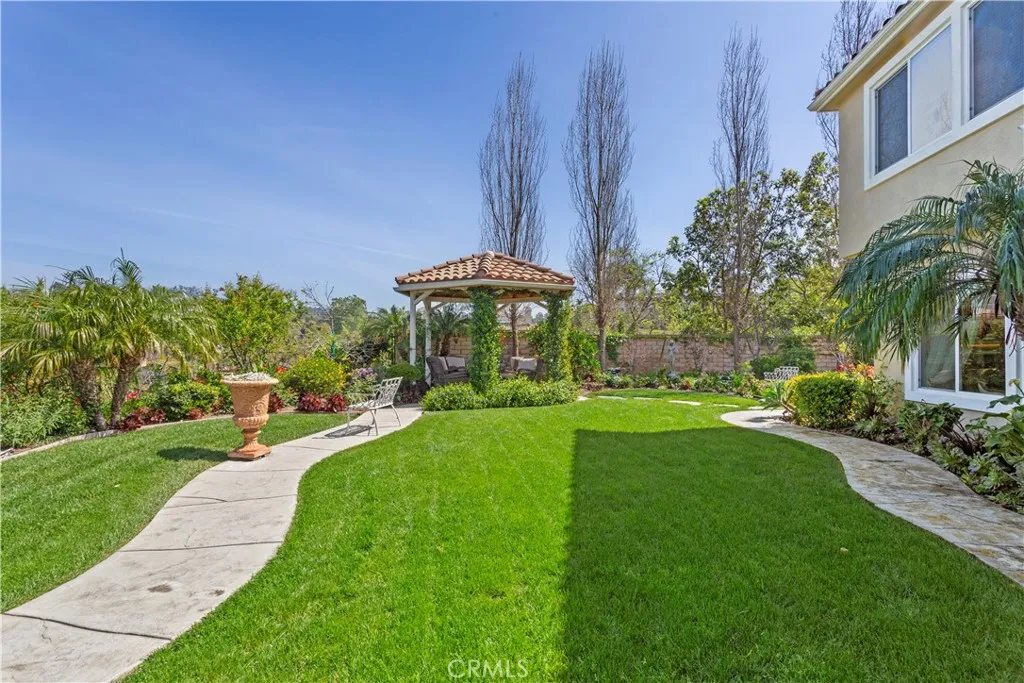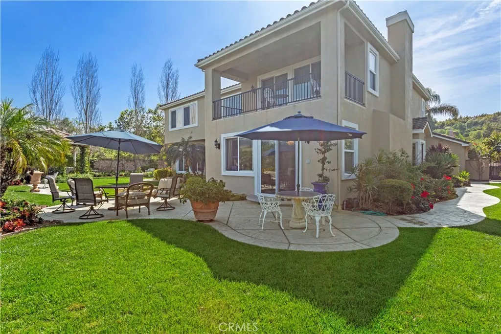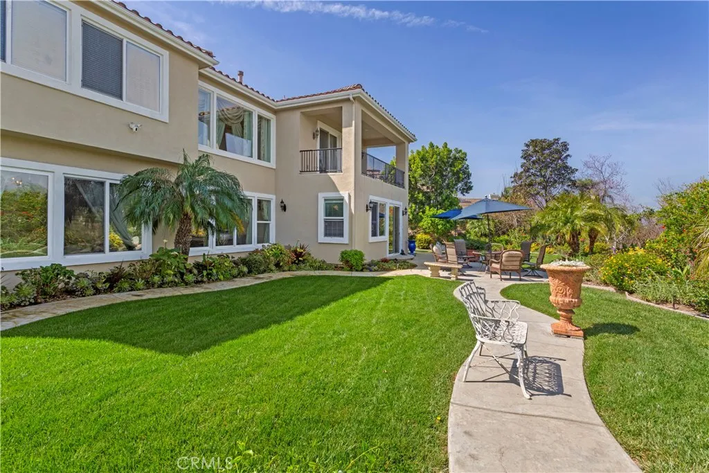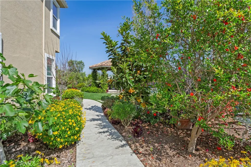 Elegant Mediterranean Luxury View Home in Pinnacle Community Experience refined living in this stunning Mediterranean luxury residence located in the highly desirable Pinnacle community. This exceptional home features breathtaking views, beautiful professional landscaping, and an impressive custom paver driveway leading to grand double entry doors with beveled glass. Inside, dramatic double wrought-iron staircases create a striking first impression. The spacious floor plan offers 5 bedrooms plus an office/library with French doors, perfect for working from home. The gourmet kitchen is designed for both everyday living and entertaining, featuring stainless steel appliances, a 6-burner stove with grill and warming drawer, upgraded cabinetry, granite countertops, a large center island, and a butlers pantry. The elegant family room features a custom fireplace, while expansive living spaces showcase custom lighting, travertine and hardwood flooring throughout. The luxurious primary suite offers a private balcony with stunning views of sunsets and city lights, along with a cozy fireplace and a convenient morning kitchen. The completely remodeled spa-inspired primary bathroom features a Jacuzzi tub, oversized shower enclosure, and dual vanities. Each bedroom includes its own attached bathroom, and a spacious downstairs bedroom provides added flexibility for guests or multi-generational living. The beautifully landscaped backyard creates a private garden retreat with numerous mature fruit trees, including persimmon, plum, peach, pear, pomegranate, apple, avocado, grapevines, fig, a