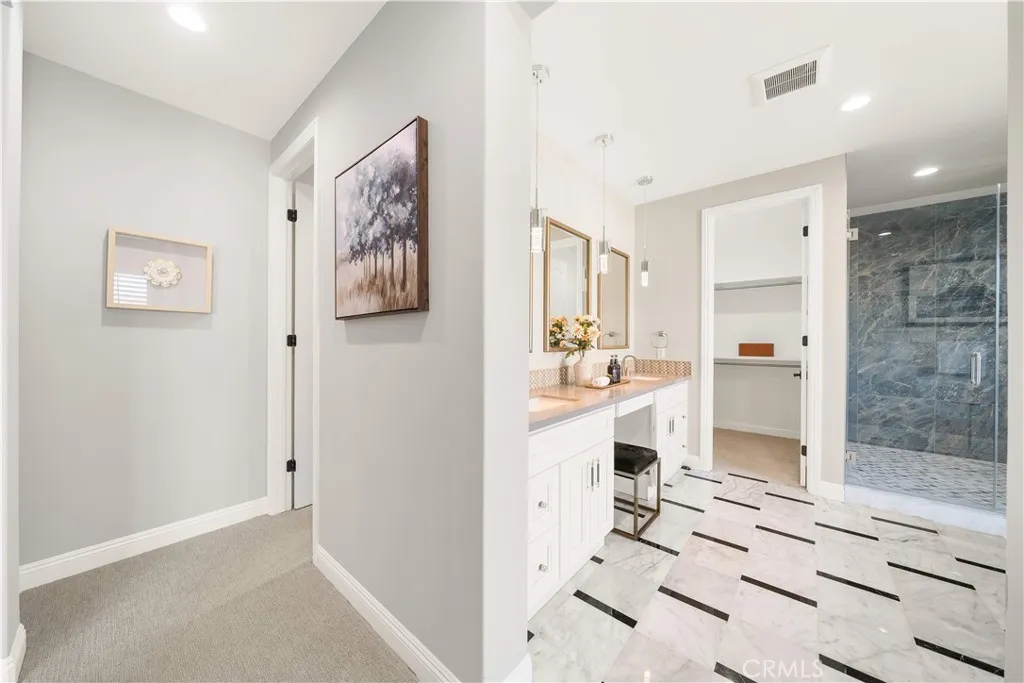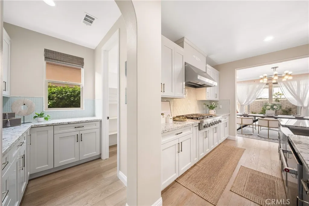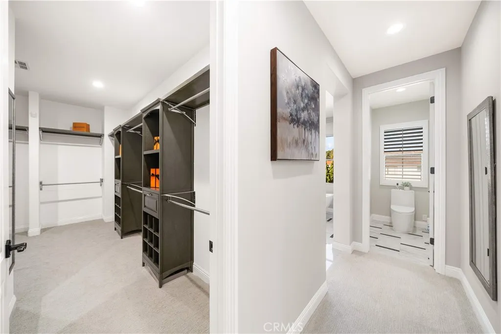 Premier Custom Residence in University Park | Rare Newer Construction in South Irvine Location Located in the highly sought-after University Park community in South Irvine, this extensively upgraded custom residence offers a rare opportunity to own a newer home in one of Irvines most established neighborhoods. Built in 2022, the home features quality craftsmanship, thoughtful design, and refined finishes throughout. A well-designed floor plan welcomes you inside. The main level includes two en-suite bedrooms with private entrancesideal for multi-generational living or guestsalong with a dedicated office and powder room. Interior highlights include a curved wrought-iron staircase, designer chandelier, and hardwood flooring throughout the first floor. The open-concept great room features expansive sliding glass doors that seamlessly connect indoor and outdoor living. The gourmet kitchen is equipped with glass display cabinetry, KitchenAid appliances, an oversized Sub-Zero built-in refrigerator, marble countertops, and a walk-in pantry. The dining area is surrounded by sliding glass doors and complemented by a wine refrigerator and storage. Upstairs, a spacious loft connects to a custom home theater, creating a flexible entertainment space. Four en-suite bedrooms are well-separated for privacy, including two primary suites: The primary suite 1 features double-door entry, dual vanities, a soaking tub, huge walk-in shower, and his-and-her walk-in closets with marble flooring. The primary suite 2 offers a private balcony and a multi-head shower for a spa-like experience.Two addit