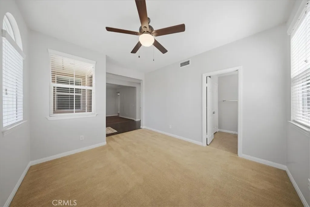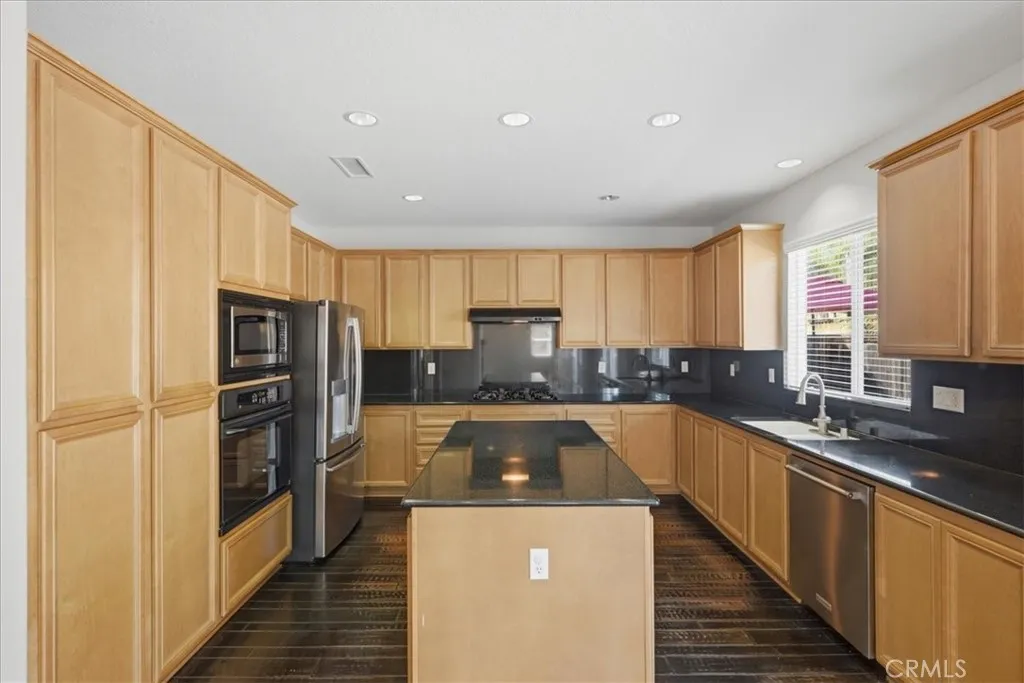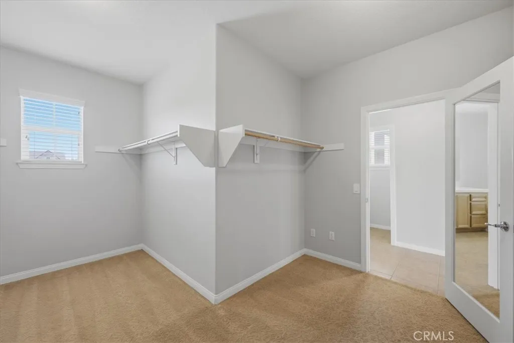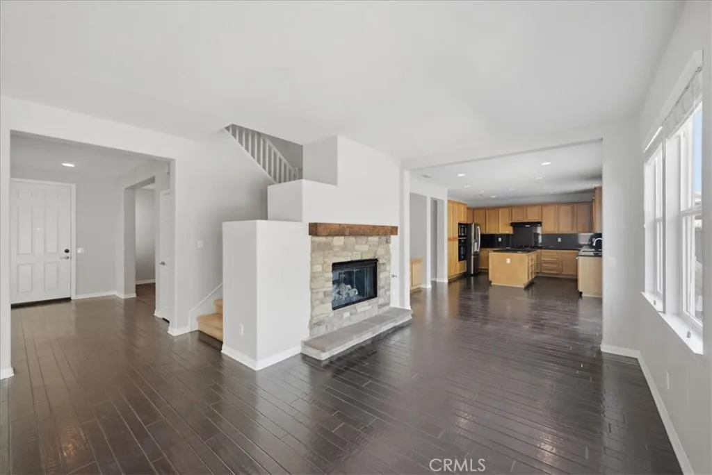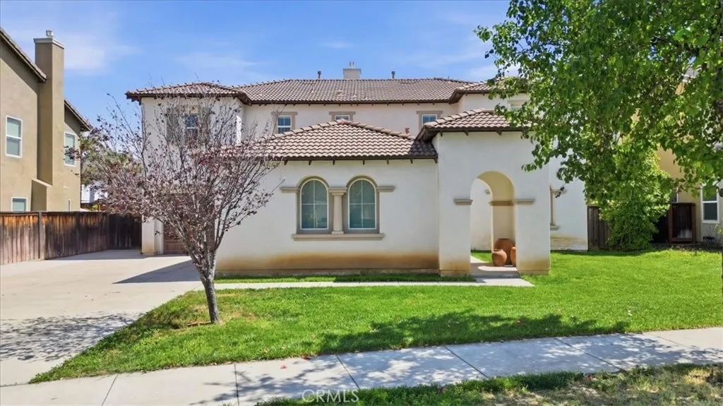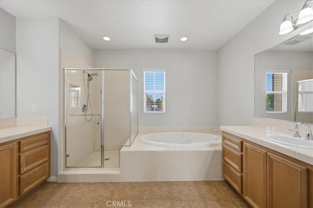 Stay cool inside and out at this Adeline's Farm oasis in French Valley. Take a dip in the pool and enjoy the indoor breeze of your whole-house fan. This Shea-built home features a custom pool with stone waterfalls, spa, and built-in poolside fire pit. Inside, dark wood floors flow through an open living area anchored by a stone fireplace with rustic wood-beam mantel. Four generous bedrooms include a spacious primary suite with wall of windows overlooking the pool, spa-inspired bath with jet tub, glass-enclosed shower, dual vanities, and enormous walk-in closet. Upstairs loft with built-in desk, plus a library or workout niche. Full laundry room with sink, direct-access 2-car garage plus separate 1-car garage for workshop or storage. Temecula School District - French Valley Elementary, Bella Vista Middle, Chaparral High. Minutes to Wine Country and Lake Skinner with community parks and trails throughout.