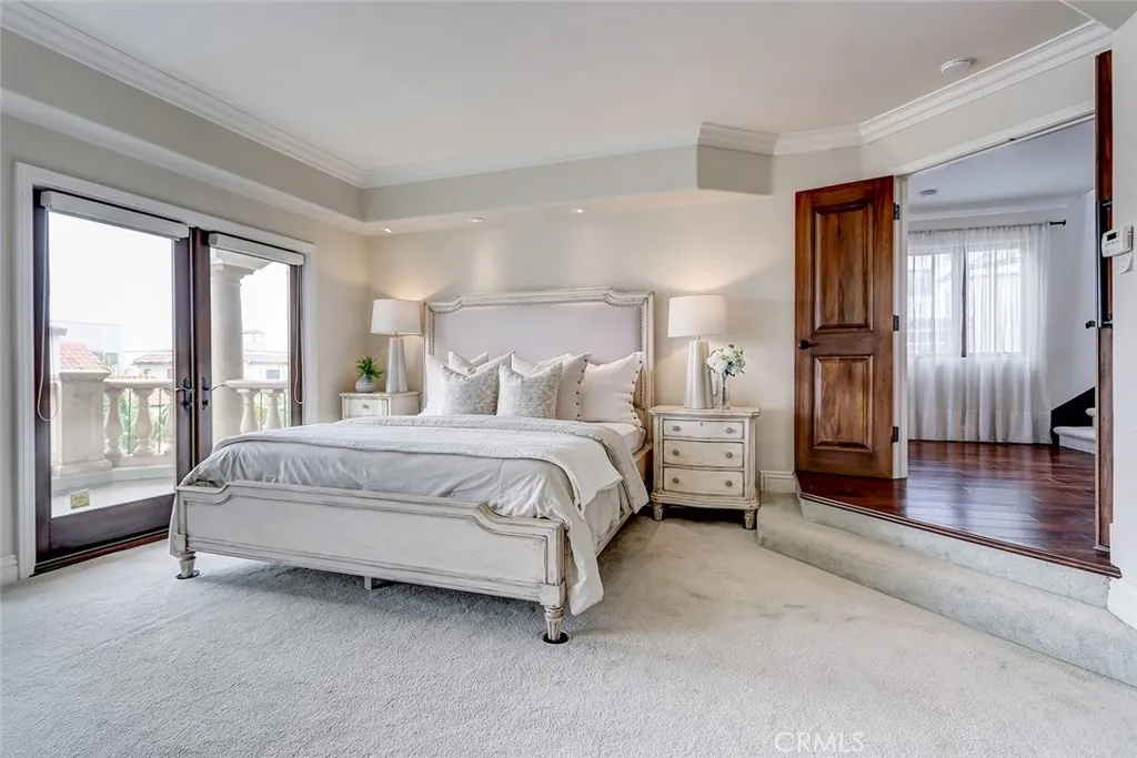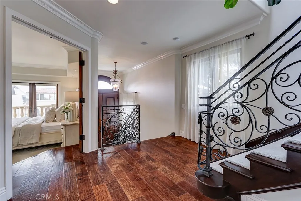 A rare offering in coveted North Hermosa Beach this Ocean View single family home is just two blocks from the sand, in the desirable "between the piers" location. A beautifully appointed coastal residence that captures sweeping ocean views and offers a thoughtfully designed floor plan ideal for refined beachside living. The upper level is designed for both entertaining and everyday enjoyment, featuring an expansive living room with fireplace that opens to a generous ocean view deck perfect for sunset gatherings. The living space flows effortlessly into a beautifully finished kitchen with custom cabinetry, stone countertops, breakfast bar, and an inviting breakfast nook filled with natural light. Also on this level are a tucked away family room and an adjacent home office that could easily serve as a fourth bedroom, with a three quarter bath nearby. The entry level hosts three bedrooms including a serene primary suite with private deck, walk in closet, and a spa inspired bath designed as a peaceful retreat. Two additional bedrooms open through French doors to a private garden courtyard, creating a tranquil outdoor space for guests or quiet relaxation. Additional highlights include a two car garage with extensive storage plus four additional parking spaces, an exceptional convenience this close to the beach. Enjoy sweeping ocean views, a thoughtfully designed floor plan, and one of the South Bays most desirable North Hermosa locations.