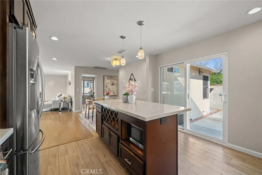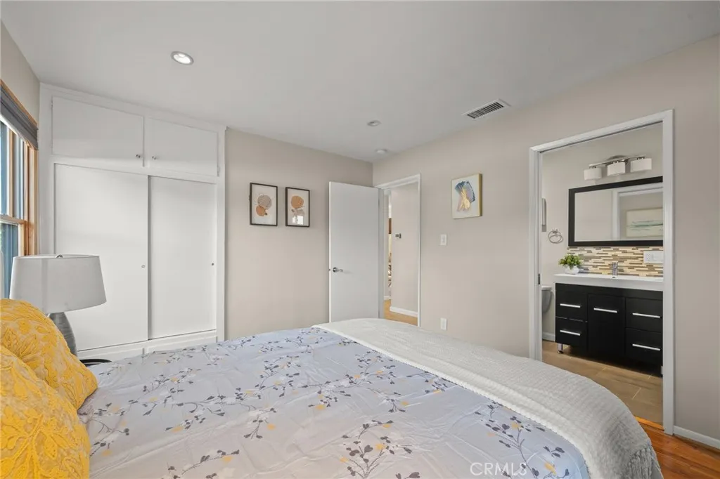Nestled in the vibrant heart of Silicon Beach, Close to the bustling tech hub of Playa Vista, this Del Rey. 3 bedroom + 2 full bath renovations have enhanced its exterior and interior features, including washer/dryer in unit, AC, hardwood flooring, upgraded master bathroom, updated kitchen. The bedrooms have been enlarged, with the master suite boasting an ensuite bathroom featuring vanity and a standing shower. The kitchen features custom solid cherry cabinetry, granite countertops, and a beautiful travertine mosaic tile backsplash, the upgrades don't end there. This home also features central air/heat, a cozy electric fireplace. Natural light pours in through the southern exposure, large windows, creating a bright and inviting ambiance throughout the spacious open floor plan. The garage with direct access into the home. Conveniently situated, perfect for the short walk to award-winning Playa del Rey Elementary, hop on your bike and cruise to the beach on the Ballona Creek bikeway, or shop at Whole Foods and catch a movie in Playa Vista.