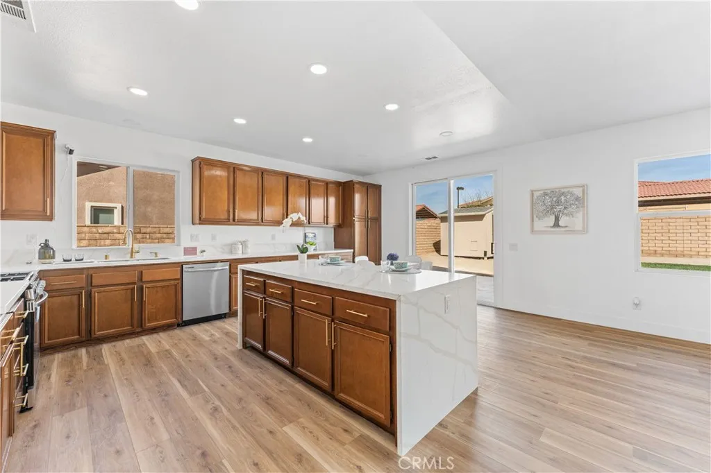 Beautiful and spacious home located in the heart of Palmdale offering over 3,000 sq ft of living space. Impressive property features 5 spacious bedrooms and 4 bathrooms, including a convenient downstairs bedroom with its own bathroom, perfect for guests or multi-generational living. Home offers a formal living room and formal dining room, along with a large family room featuring a cozy fireplace, creating the perfect space for relaxing or entertaining. Huge kitchen is designed for both style and functionality with a large island, quartz countertops, and brand-new stainless steel appliances. Recent upgrades include new flooring, fresh interior paint, and modern fixtures throughout, giving the home a clean and updated feel. Expansive backyard provides plenty of space for outdoor gatherings, entertaining, or future customization. Conveniently located close to schools, shopping, and everyday amenities, this home offers comfort, space, and a prime Palmdale location.