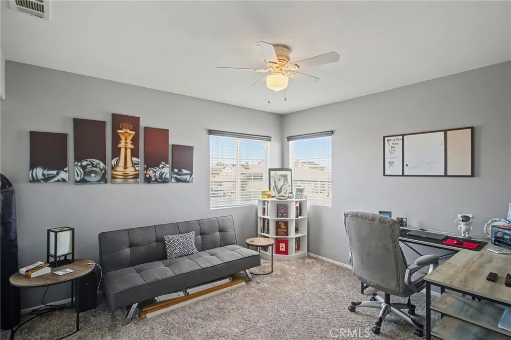 Looking for a spacious 5-bedroom home with the potential for a 6th bedroom? This is the one! This bright and airy floor plan is thoughtfully designed with flexibility in mind. The bonus room can easily be converted into a 6th bedroom, making it perfect for large families, multi-generational living, or work-from-home setups. The open-concept layout features an island kitchen with newer appliances and a custom tile backsplash, flowing seamlessly into the expansive family room with a cozy fireplace , creating the perfect space for everyday living and entertaining. A convenient pantry is tucked neatly under the stairwell. Downstairs, youll find a bedroom with a bathroom, ideal for guests or in-laws. The home also offers a spacious living room and a formal dining room perfect for hosting gatherings and special occasions. Enjoy fresh interior paint, easy-to-maintain tile flooring, and custom LED lighting throughout, adding both style and warmth. Step outside to a private backyard with no rear neighbors, featuring a large patio and an additional concrete slab ready for your dream gazebo,perfect for summer BBQs and entertaining. Theres also a concrete RV parking pad on the side for added convenience. Located near the I-15 for easy commuting, and just minutes from the new Kaiser Medical Center, shopping, and schools. Whether youre heading to the mountains for a ski trip or taking a quick getaway to Las Vegas, this location offers it all. This home is ready for its next family to lovedont miss out!