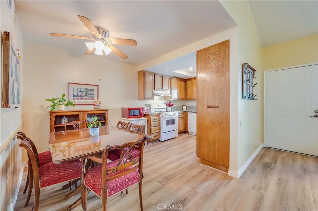 Situated within the highly sought-after Greentree gated community, this tri-level end-unit condo offers 2 bedrooms, 1 bathrooms, and the convenience of indoor laundry. Surrounded by mature trees, tranquil walkways, and beautifully maintained greenbelts, the setting provides a peaceful and inviting atmosphere in a prime location. The main level features a bright and open living space, including the living room, dining area, kitchen, and a convenient coat closet. The spacious living room showcases vaulted ceilings, laminate flooring, and a cozy gas fireplace perfect for relaxing or entertaining. The kitchen is both stylish and low-maintenance, complete with granite countertops, wood cabinetry, a flush-mounted stainless-steel sink, recessed lighting, and matching laminate flooring. Upstairs, youll find two generously sized bedrooms along with both bathrooms. The primary suite offers an expansive layout, dual closets, and a private en-suite bath, creating a comfortable and private retreat. Enjoy outdoor living on your private gated patio, designed with pavers and easy-care artificial turf ideal for relaxing or hosting. The lower level provides direct access to a two-car garage with laundry hookups and ample storage, adding everyday convenience. Additional highlights include dual-pane windows, ceiling fans, a newly installed central HVAC system and even a new roof being installed now!! Ideally located just minutes from Cal State Fullerton and Marshall B. Ketchum University, as well as top-rated schools, shopping, dining, and entertainment, this home is an excellent opportunity