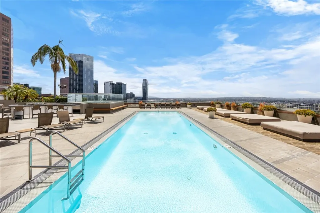 Downtown living awaits on the 30th floor of 1100 Wilshire. With mountain and downtown views, this unit features a beautiful open kitchen with granite countertops and stainless steel appliances, updated flooring, in-unit washer dryer, a separate bathtub and shower, and plenty of amenities. Relax on the 17th floor Sky Deck complete with pool, spa and panoramic views, host guests and enjoy the outdoor grill, fire pit, and cabanas, or make use of the 24/7 fitness center, media lounge, and business center. This building also features a front desk attendant, gated garage, and guest parking. HOA covers gas, water, sewer, and trash. With all that Downtown offers just moments away, you can't miss this opportunity.