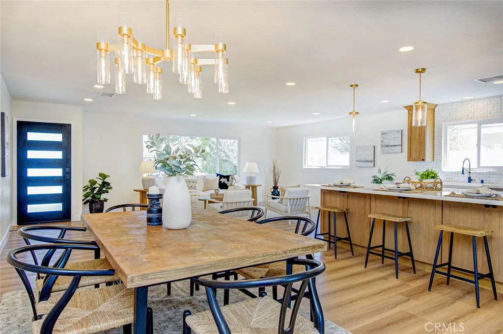 Welcome to this beautifully reimagined and expanded single-story home in the highly desirable College Park neighborhood of Costa Mesa. This turnkey residence features 3 bedrooms and 2 bathrooms, showcasing a timeless modern design with exceptional attention to detail and seamless open-concept living. Step inside to an inviting living room with refined finishes that create a warm yet sophisticated atmosphere. At the heart of the home, the fully redesigned chefs kitchen impresses with custom cabinetry, quartz countertops, a designer marble backsplash, a custom range hood, and high-end appliancesincluding a premium range, built-in microwave drawer, dishwasher, and French-door refrigerator. The kitchen flows effortlessly into a dedicated dining area highlighted by a stylish chandelier and opens to a spacious family/rec roomperfect for everyday living and entertaining alike. The spacious primary suite offers a peaceful retreat, complete with a beautifully updated ensuite bathroom featuring quartz countertops, a walk-in shower, and a generous walk-in closet. Two additional bedrooms and a tastefully upgraded secondary bathroom provide flexibility for family, guests, or a home office. Experience true California indoor-outdoor living in the private backyard, complete with a brand-new pergola and a serene retreat area featuring a tranquil water fountainideal for relaxing or hosting gatherings. Additional highlights include an attached two-car garage with epoxy-coated flooring, electric vehicle charging capability, new garage door motor, and remote access. The home has undergone an ex