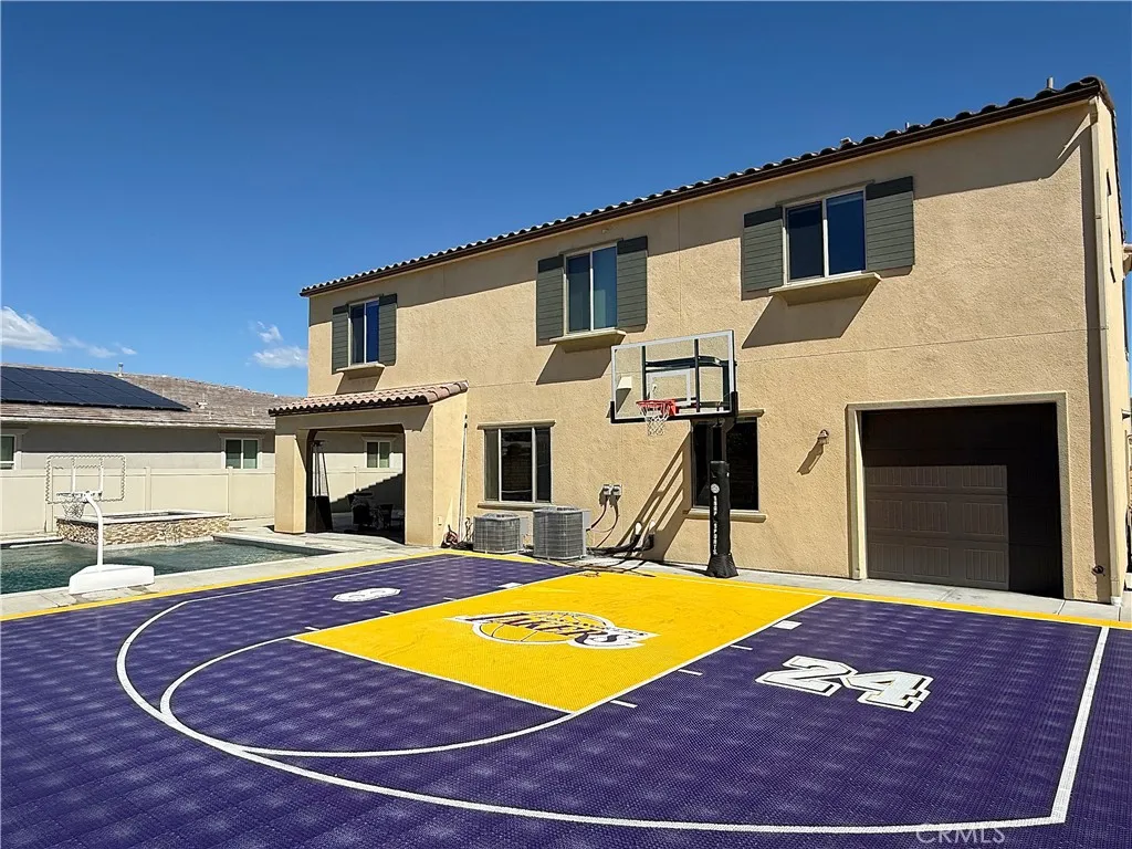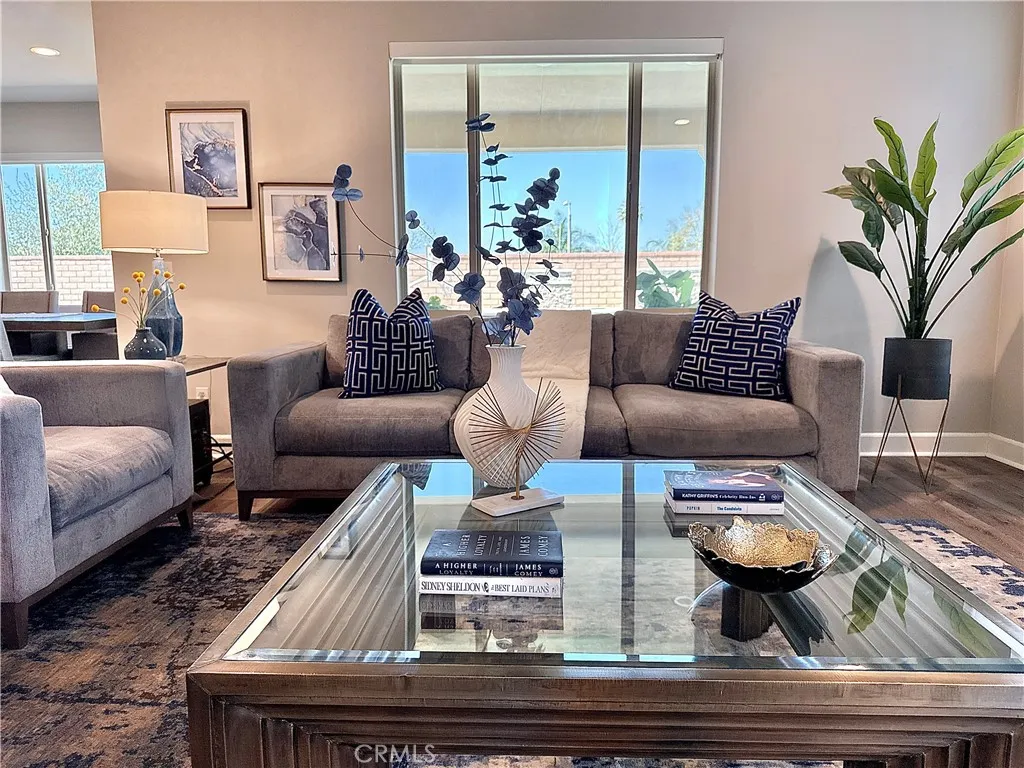 Welcome to this stunning Brookfield-built 5-bedroom, 3-bath home, nestled in the highly sought-after community of Audie Murphy Ranch. From the moment you step inside, soaring 9-ft ceilings, custom motorized blinds, luxury LVP flooring, custom paint, and an abundance of natural light set the tone for elevated California living at its finest. The gourmet kitchen is a true showstopper featuring a dramatic 9-ft quartz waterfall island, KitchenAid stainless steel appliances, 5-burner convection oven, glass tile backsplash, white shaker cabinetry, soft-close drawers, pendant lighting, and walk-in pantry, all opening seamlessly to the great room and dining area with state-of-the-art 5.1 surround sound. The main level also offers a bedroom, full bath, and private office, ideal for guests or multigenerational living. Upstairs features a spacious loft, generous secondary bedrooms with walk-in closets, and a breathtaking primary suite with his and her closets, stunning mountain views, and a spa-inspired bath with a deep soaking tub and separate shower. The backyard is an entertainers dream, custom pool with waterfalls and fire pits, a covered California Room, gas line for outdoor kitchen, and a custom Lakers basketball court. And for the discerning buyer who truly appreciates the finer things, select pieces from a curated Bernhardt furniture collection are available and negotiable as part of the sale. Bernhardt is one of Americas most iconic luxury furniture brands, with extraordinary craftsmanship, timeless design, and heirloom-quality elegance. Acquiring these pieces alongside this