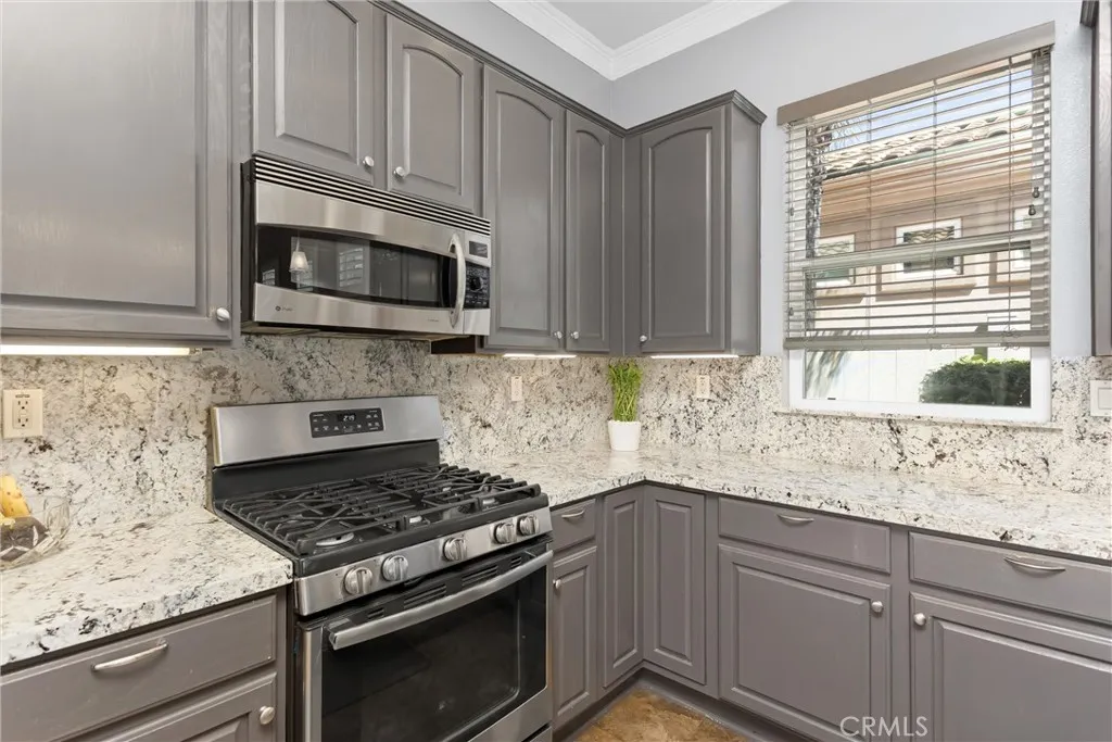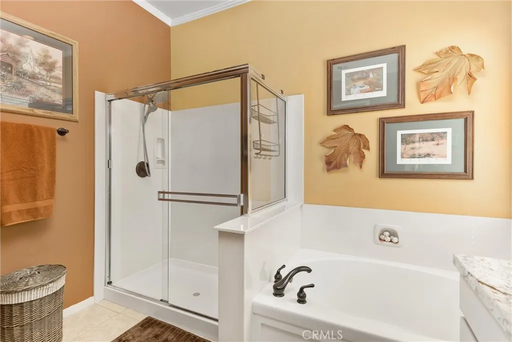 ***Corner Lot and Updated*** Located within the gated 55+ community of Sun Lakes, this 3 bedroom 2 bath true pride of ownership single story home offers a comfortable and practical layout with thoughtful updates and inviting outdoor space. The exterior presents clean curb appeal with a tile roof, stone accents, and a covered front entry framed by mature landscaping and a shaded lawn. Inside, wood flooring runs through the main living areas, complemented by neutral tones, crown molding, and plantation shutters that bring in natural light while maintaining privacy. The living and dining areas connect to the kitchen, creating a functional flow suited for both everyday living and casual gatherings. The kitchen features granite countertops, updated cabinetry, stainless steel appliances, and a peninsula with bar seating. Bedrooms are positioned to allow separation and privacy, with soft carpeting and warm finishes that create a comfortable retreat, while the primary suite includes direct access to an ensuite bath with dual sinks, a soaking tub, and a separate glass enclosed shower. Additional interior highlights include an indoor laundry room with storage and a clean, organized garage with built in cabinetry and workspace potential. The rear yard is designed for low maintenance enjoyment, offering a covered patio with a slatted pergola cover, brick flooring, and space for outdoor dining or relaxing, all bordered by privacy fencing and mature greenery. Set within Sun Lakes, residents enjoy access to golf, clubhouse amenities, fitness facilities, dining, and a full calendar of comm