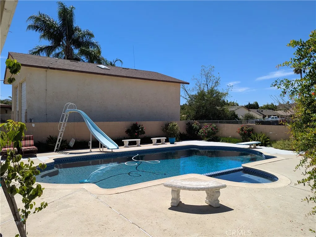 These homes do not come on the market often! One acre property with 4bed/3bath, 2939 sq ft home & a swimming pool. Large front door with formal entry leads to the grand living room and formal dining area. There is a separate family room or bonus room on the other side of the home. The primary suite is located off the living room and has a walk in closet and a spacious private bathroom with a soaking tub and walk in shower. You will love the double doors to the backyard that gives access to a private patio area and a path to the pool & spa. The kitchen has plenty of storage, a cooking island and many counters that make it enjoyable to have helping hands at mealtime. On the other side of the kitchen there is a second eating area or maybe use for an office, crafts or homework area. Walk in pantry. There is an additional room that may have been for developing photos, but perfect for a wet bar/coffee corner/snack room... Stock it with all the fun goodies and be prepared for company at a moment's notice! You will get a lot of use from the additional family room... perfect for gatherings! There is a sliding door leading to the back yard. There are 3 bedrooms down the long hallway. Bedrooms 2 & 3 share a Jack & Jill bathroom. New tub installed. The laundry room is located at the end of the hallway, along with the 3rd bathroom. Built in pool was resurfaced with pebble tech in 2024. Additionally, a new spa heater and a new high volume gas line was run to the spa. So Cal Gas also installed a new meter. Plenty of parking with the large circular driveway, 3 car attached garage & RV carp